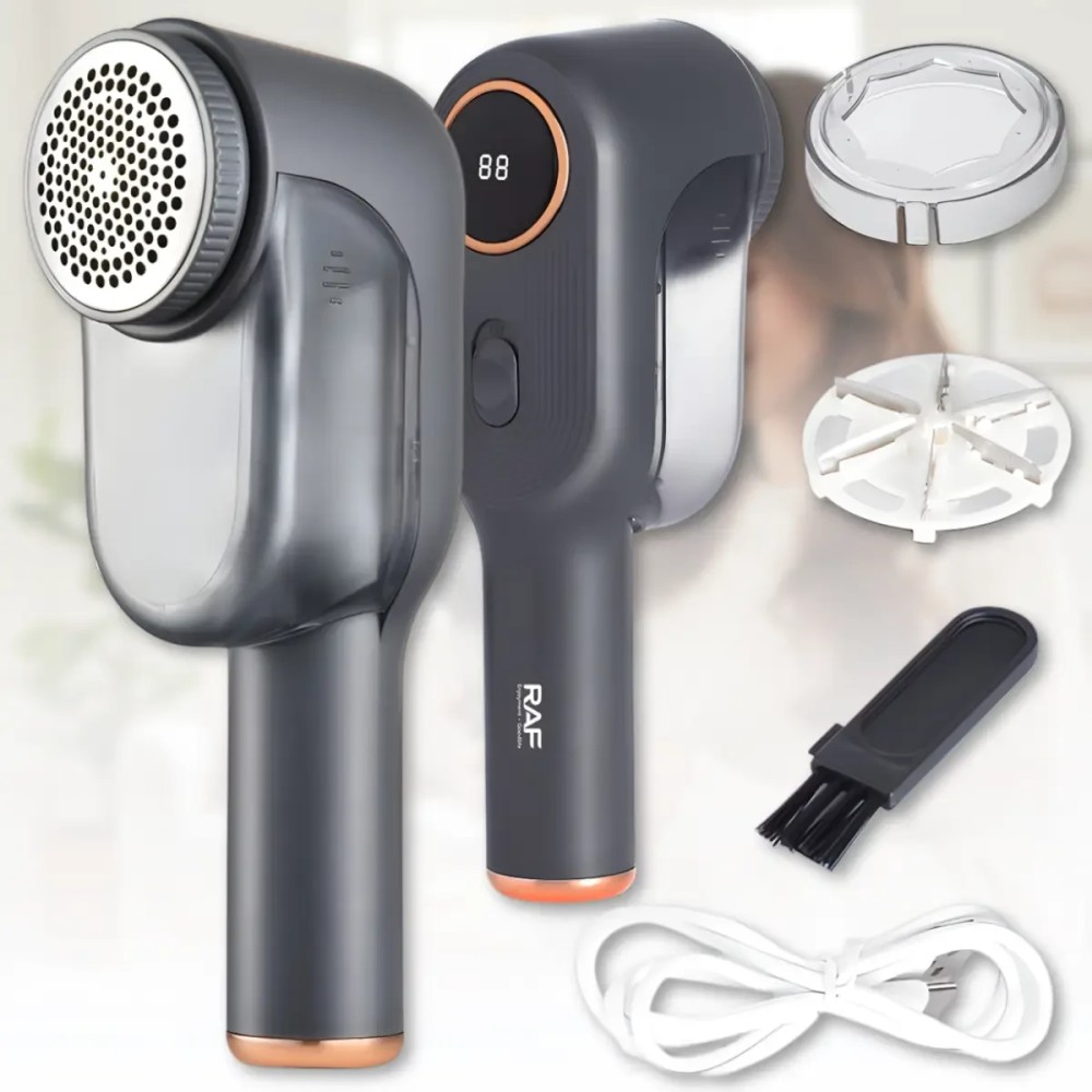 Акумуляторна машинка для видалення ковтунців із контейнером для ворсу RAF R.4104 3W Акумуляторна машинка для видалення ковтунців RAF R.4104 призначена для дбайливого й ефективного догляду за одягом і домашнім текстилем. Пристрій допомагає швидко повернути акуратний зовнішній вигляд речей із вовни, бавовни, трикотажу та інших тканин, видаляючи ковтунці, ворс і дрібний пил без пошкодження матеріалу. Модель обладнана потужним двигуном і системою із шести гострих лез, що забезпечує стабільну роботу та рівномірний результат. Зручний LED-дисплей дає змогу контролювати рівень заряду та потужність, а компактний корпус і просте керування роблять машинку практичною для щоденного використання вдома або в поїздках. Переваги: Потужний двигун: забезпечує стабільну та ефективну роботу Шість лез: швидке та рівномірне видалення ковтунців Неіржавка сталь лез: довговічність і стійкість до зношування LED-дисплей: наочний контроль рівня заряду та режиму роботи Стільникова захисна сітка: безпечне видалення ворсу без пошкодження тканини Великий контейнер: рідше потрібно очищення від зібраного ворсу Характеристики: Тип пристрою: машинка для видалення ковтунців Модель: RAF R.4104 Потужність: 3 Вт Тип живлення: вбудований акумулятор Заряджання: через USB-кабель Час автономної роботи: до 5 годин Леза: 6 лез із неіржавкої сталі Сітка: стільникова, зносостійка Дисплей: LED-індикатор заряду та потужності Контейнер для ворсу: знімний, прозорий Матеріал корпусу: ABS-пластик Колір корпусу: сірий Розмір: 20 × 6 см Комплектація Машинка для видалення ковтунців USB-кабель для заряджання Щіточка для чищення Захисна кришка