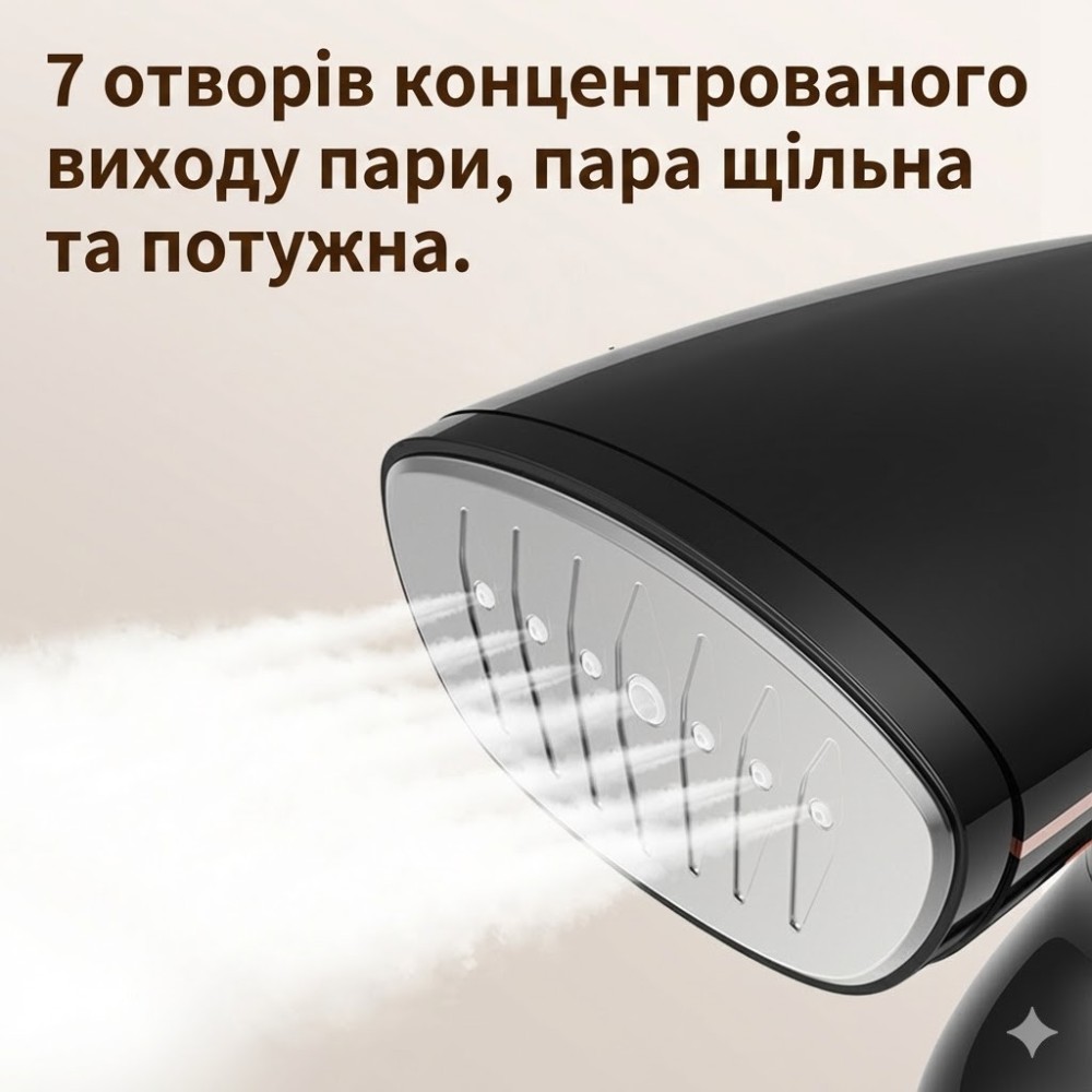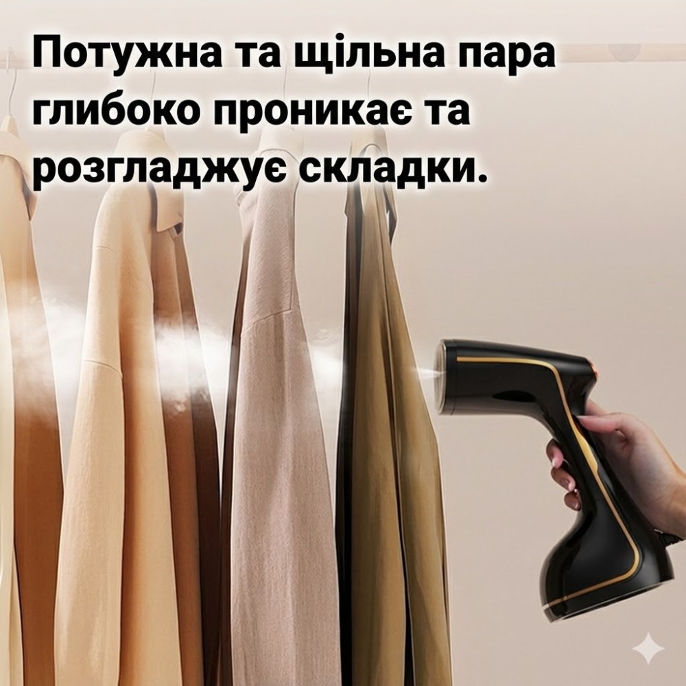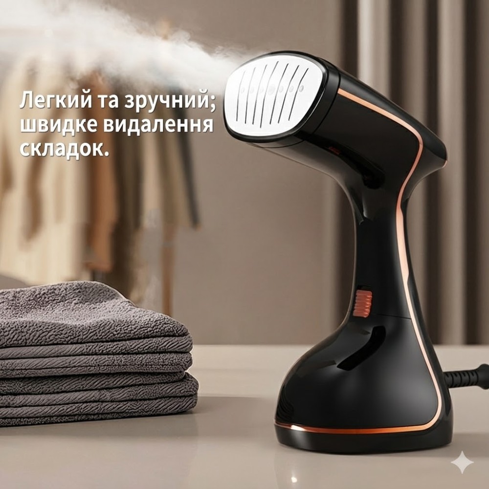 Опис товару Ручний відпарювач потужністю 1500 Вт — це незамінний помічник для швидкого та делікатного догляду за речами будинку або в поїздках. Компактний пристрій дає змогу миттєво розпрасувати складки, освіжити текстиль і усунути неприємні запахи без використання громіздкої прасувальної дошки, заощаджуючи ваш час і сили. Переваги та особливості: Висока потужність: 1500 Вт забезпечують швидке нагрівання та стабільне подавання пари, що дає змогу справлятися навіть зі щільними тканинами. Швидка готовність до роботи: Пристрій нагрівається менш ніж за 30 секунд, що ідеально для ранкових зборів. Безпека для тканин: Парове оброблення не деформує волокна, підходить для шовку, синтетики, бавовни, вовни та льону. Сталева підошва: Робоча поверхня з неіржавкої сталі забезпечує легке ковзання й довговічність приладу. Місткий резервуар: Ємність для води об'ємом 280 мл дає змогу відпарити кілька речей поспіль без доливання. Функція фіксації подавання пари: Кнопку вмикання можна зафіксувати для безперервної роботи, щоб не тримати палець у напруженні. Компактність і ергономіка: Зручна ручка та легка вага роблять використання комфортним, а габарити дають змогу легко упакувати прилад у валізу. Універсальність: Підходить не тільки для одягу, але й для оброблення штор, м'яких меблів і дитячих іграшок (термічна дезінфекція). Технічні характеристики: Тип: ручний відпарювач Потужність: 1500 Вт Об'єм резервуара для води: 280 мл Матеріал підошви: нержавіюча сталь Час нагрівання: ~30 секунд Живлення: мережа 220 В Індикація роботи: є (світловий індикатор) Автоматичне вимкнення: у разі браку води або перегрівання Комплектація ручний відпарювач насадка-щітка для чищення одягу мірний стаканчик (опціонально) інструкція користувача заводське паковання