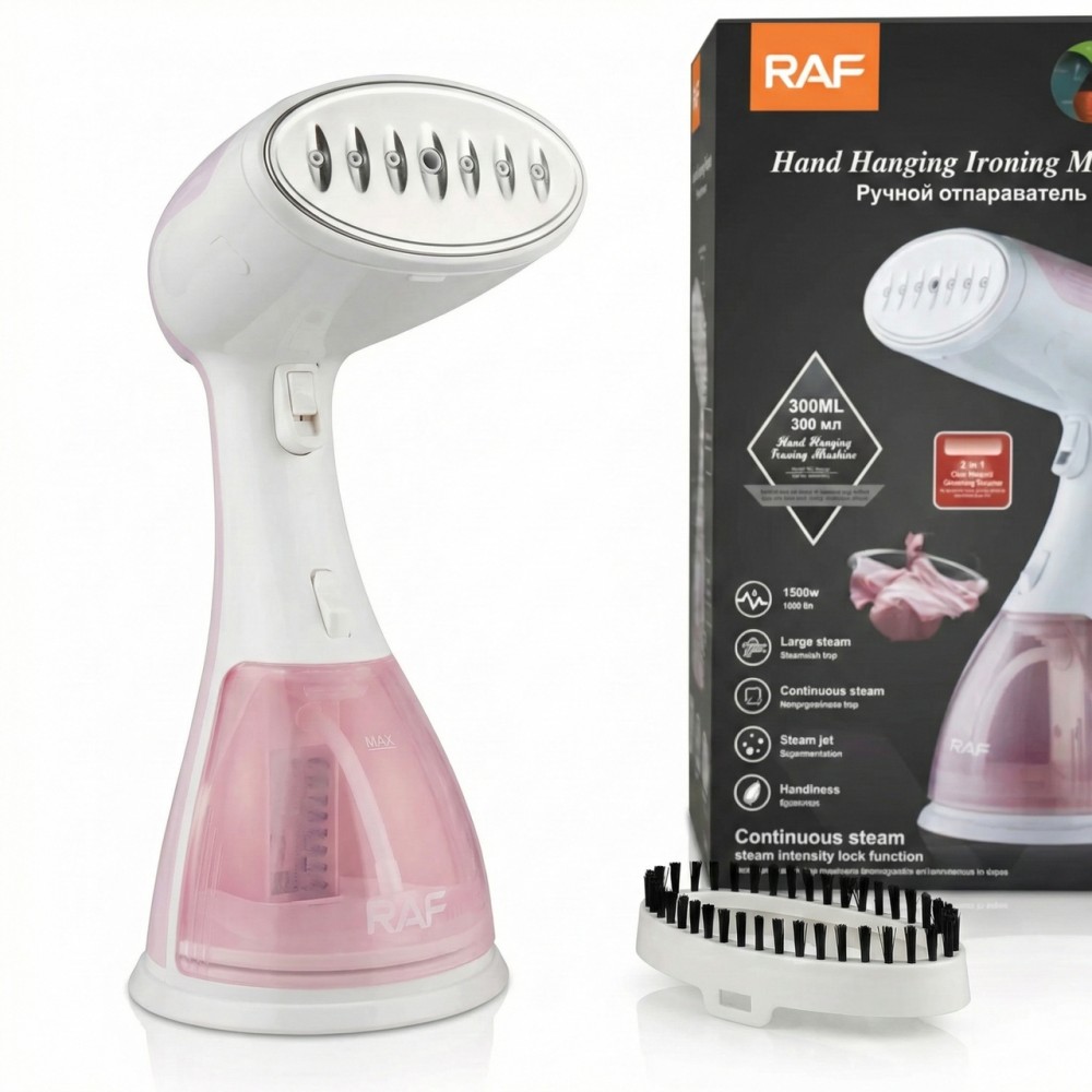 Опис Ручний відпарювач RAF R.1214P — це потужний і компактний пристрій для швидкого догляду за речами. Завдяки потужності 1500 Вт прилад готовий до роботи вже за 25 секунд після увімкнення. Гаряча пара проникає у волокна тканини, миттєво розгладжуючи складки, усуваючи неприємні запахи та дезінфікуючи одяг. Резервуар об'ємом 300 мл дає змогу обробити кілька речей поспіль без потреби доливання води. Пристрій безпечний для будь-яких типів тканин, включно з шовком, вовною та синтетикою, і є чудовою альтернативою класичній прасці. 2) Переваги Миттєве нагрівання — готовність до роботи всього за 25 секунд. Висока потужність 1500 Вт — забезпечує щільний і стабільний потік пари. Місткий бак 300 мл — тривалий час роботи без перерв. Неіржавка сталь — робоча поверхня стійка до подряпин і забезпечує легке ковзання. Універсальність — підходить для одягу, штор, м'яких меблів та іграшок. Дезінфекція — висока температура пари вбиває до 99% бактерій і пилових кліщів. Компактність — зручний для використання вдома та в подорожах. 3) Характеристики Тип: ручний вертикальний відпарювач. Потужність: 1500 Вт. Об'єм резервуара для води: 300 мл. Матеріал підошви: неіржавка сталь. Матеріал корпусу: термостійкий пластик. Час нагрівання: 25 секунд. Подача пара: безперервна. Живлення: мережа 220 В. Індикатор роботи: є. Цвет: рожевий/білий. 4) Комплектація Ручний відпарювач RAF R.1214P. Насадка-щітка для чищення одягу Інструкція. Заводське паковання.