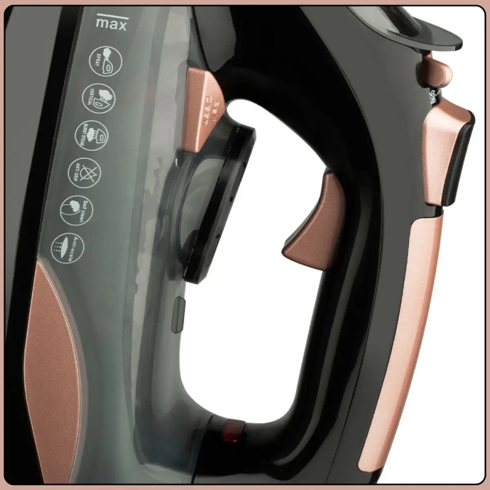 Електрична праска з керамічною підошвою і резервуаром 350 мл RAF R.1388 2400W Праска RAF R.1388 призначена для ефективного та комфортного прасування одягу з різних типів тканин. Висока потужність 2400 Вт забезпечує швидке нагрівання та стабільне подавання пари, даючи змогу легко справлятися навіть зі щільними матеріалами. Керамічна підошва рівномірно розподіляє тепло та плавно ковзає тканиною, знижуючи ризик пошкоджень і заломів. Пристрій підтримує вертикальне відпарювання, що зручно для освіження одягу прямо на вішалці, штор або делікатних виробів. Паровий удар допомагає розгладжувати складні складки, а функція розпилення води додатково зволожує тканину для найкращого результату. Регульований термостат дає змогу вибрати оптимальний режим прасування, а система антикрапля запобігає появі плям від води. Переваги: Висока потужність: швидке нагрівання та стабільна робота Керамічна підошва: легке ковзання тканинами Вертикальне відпарювання: зручність оброблення одягу на вішалці Паровий удар: ефективне розгладження щільних складок Функція розпилення води: додаткове зволоження тканини Зручний корпус: комфортне використання Великий резервуар: рідше потрібно доливання води Характеристики: Тип пристрою: електрична праска Потужність: 2400 Вт Подошва: керамічна Місткість резервуара для води: 350 мл Вертикальне відпарювання: є Паровий удар: є Подача пара: 10±5 г/хв Функція розпилення води: є Термостат: регульований Система антикапля: є Матеріал корпусу: пластик Колір корпусу: чорний Напруга: 220-240 В Частота: 50-60 Гц Розмір: 34×16 см