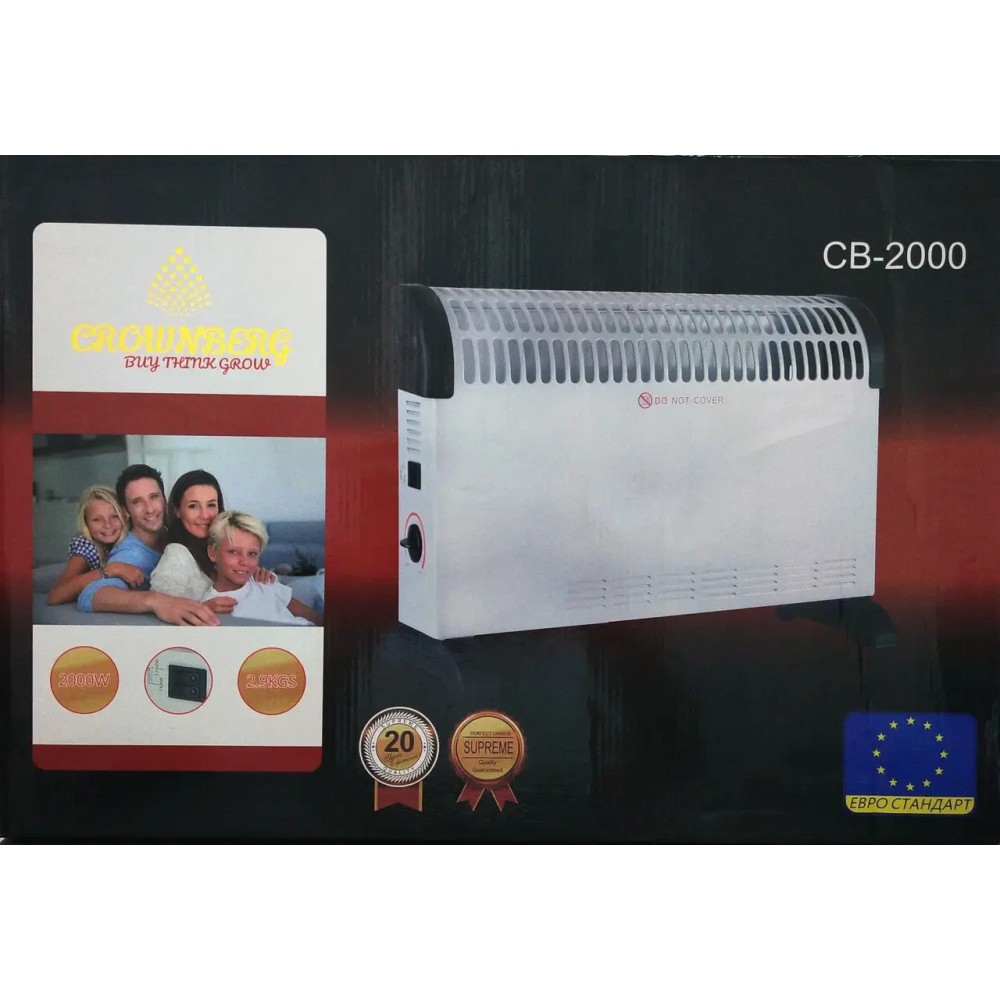 Конвекторний нагрівач Crownberg CB-2000 Конвектор Crownberg CB-2000 передбачений для нагрівання приміщення загальною площею до 20 квадратних метрів. Ви самостійно зможете регулювати всіма режимами, передбаченими в цій моделі, оскільки керування — механічне. Потужність роботи конвектора може досягати 2000 Вт. Внутрішня система пристрою максимально захищена від можливого перегрівання або навпаки — замерзання. Усього передбачено три допустимі температурні режими. Водночас, якщо ви визначитеся з оптимальним для вас рівнем, пристрій зможе автоматично підтримувати цю температуру в приміщенні. Для більшої наочності, у конвектор вбудований індикатор, який показує стан його роботи. Корпус конвектора виготовлений у білому кольорі, абсолютно універсальний для будь-якого інтер'єру. Досить класичний і водночас сучасний. Він не займе багато місця, але водночас допоможе створити оптимальну температуру для перебування в кімнаті. Для додаткової стійкості передбачені дві ніжки. Характеристика: Підходить для обігрівання дач, гаражів, складів; Миттєве нагрівання; Вбудовані ручки для зручного переміщення; Регульований термостат; 3 рівні регулювання температури (750/1250/2000 Ватів); Безшумна робота Контрольна лампочка; Захист від перегрівання; Можливий настінний монтаж (до комплекту входять необхідні фіксатори); Напруга живлення: 220 В, 50 Гц. Потужність: 2000 Вт.