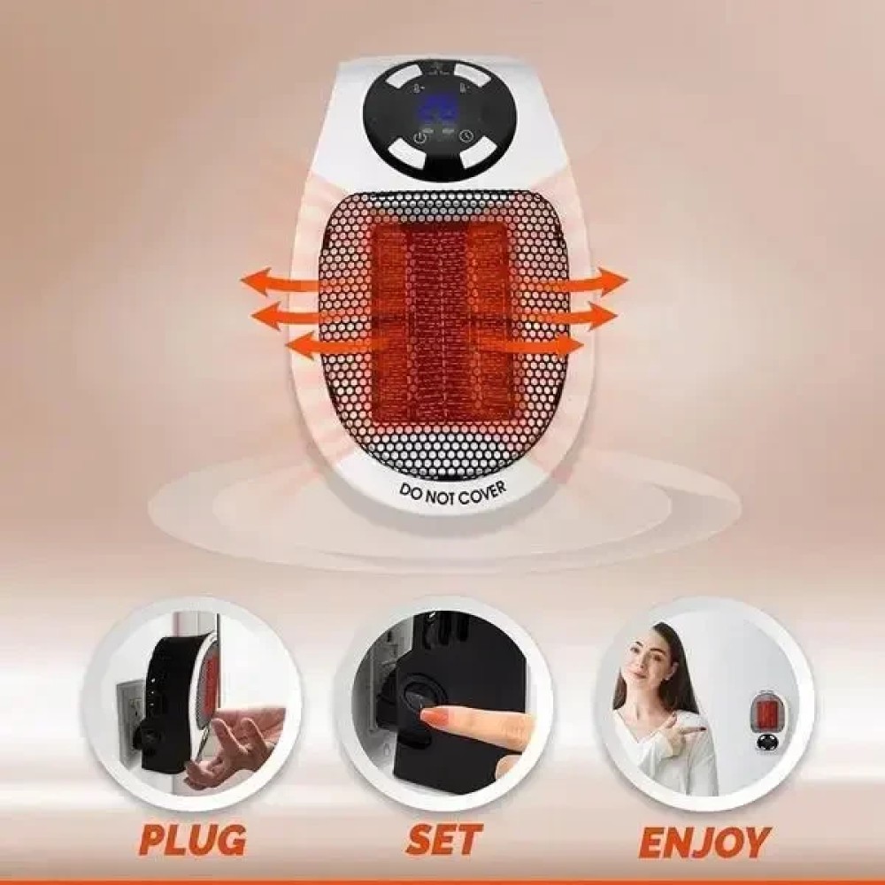 Портативний електричний мініобігрівник у розетку з дисплеєм і пультом керування Portable Heater 500 Вт Портативний нагрівач Portable Heater потужністю 500 Вт — це ідеальне рішення для створення затишку в холодних приміщеннях. Обладнаний сучасним керамічним нагрівальним елементом, він забезпечує ефективне й безпечне обігрівання. Компактний і стильний нагрівач під'єднується прямо в стінну розетку, що дає змогу заощадити місце на підлозі. Користувачі можуть легко керувати температурою й таймером за допомогою зручного пульта дистанційного керування, а світлодіодний дисплей забезпечує наочність у роботі пристрою. Переваги: Компактність: Під'єднується в розетку, не займаючи зайвого місця. Ефективність: Нагріває приміщення до 32 м2. Удобство: Пульт дистанційного керування для комфортного керування. Економія: Обігрівання за невеликі гроші. Безшумна робота: Ідеальний для використання в спальнях і офісах. Характеристики: Потужність: 500 Вт Тип керування: кнопки / пульт Тип нагрівального елемента: Керамічний Ефективне обігрівання: до 32 м² Діапазон регулювання температури: від 15 до 30 градусів Таймер: до 12 годин Напруга: 220-240 В, 50/60 Гц LED дисплей: Да Розміри (ВхШхГ): 18 х 11 х 12 см Колір корпусу: Чорний Матеріал корпусу: Метал, пластик Призначення: Побутове Особливості: Терморегулятор, безшумна робота, таймер