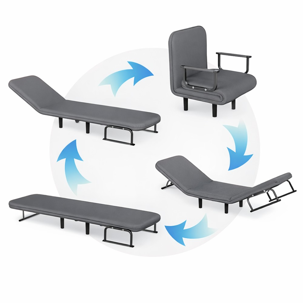 Розкладне крісло-ліжко 2в1 — це практичне та стильне рішення для дому, квартири або гостьової кімнати. У складеному вигляді воно слугує зручним кріслом для щоденного відпочинку, а за потреби легко трансформується в повноцінне односпальне ліжко. Компактні розміри дозволяють економити простір, а міцна металева конструкція забезпечує надійність і стабільність під час використання. М’яка оббивка та подушка у комплекті гарантують комфорт як для сидіння, так і для сну. Переваги Функціональний дизайн 2в1: крісло та ліжко Легке та швидке розкладання без інструментів Компактні розміри — ідеально для невеликих приміщень Міцний сталевий каркас Комфортна подушка в комплекті Стриманий сірий колір — підходить до будь-якого інтер’єру Підходить для щоденного використання та гостей Характеристики Тип: крісло-ліжко Формат: 2в1 Матеріал оббивки: текстиль (хлопок) Матеріал каркаса: сталь Колір: сірий Конструкція спинки: 5 рівнів нахилу Розміри у складеному вигляді: 80×65×65 см Розміри у розкладеному вигляді: 190×65 см Максимальне навантаження: до 100 кг Чехол: знімний Комплектація Розкладне крісло-ліжко Подушка Упаковка