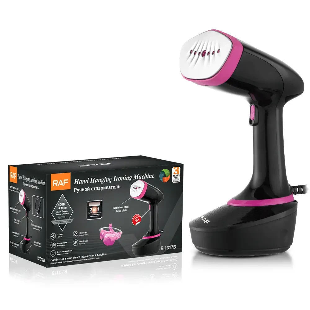 Ручний вертикальний відпарювач із насадкою для одягу на 1500 Вт RAF R.1317 Чорний Електричний відпарювач Вертикальний відпарювач RAF R.1317 — це безпечний прилад завдяки своїй невисокій температурі роботи (99.9 °C), яким неможливо пошкодити навіть найчутливішу тканину. Пристрій забезпечує безперервні параметри пари, за допомогою яких можна не тільки прасувати речі, а й чистити, дезінфікувати та позбуватися неприємних запахів. Ця модель чудово відпарює штори та тюль завдяки тому, що їх не потрібно знімати й можна виконувати все навісу. Незаперечною перевагою є можливість обробляти м'які меблі, подушки та дитячі іграшки, пристрій вбиває кліщів, бактерії та мікроби. Переваги: Гаряча пара вбиває до 99,9% бактерій на одязі та дає змогу рідше прати та хімчистку; Наявність м'якої щітки для видалення ворсу з одягу; Потужна пара усуває запахи сигарет, їжі та запах тіла; Достатня місткість резервуара для води дасть змогу не переживати, що в процесі роботи вода в ньому раптом закінчиться; Дасть змогу Вам, не знімаючи з вішака, доглядати за своїми улюбленими речами. Ви легко та швидко розпрасуєте одяг практично з будь-яких видів тканини: від делікатного шовку, до щільного драпа або кашеміру; Легкий, портативний і компактний. Зручно брати в подорожі (для відряджень, відпочинку, виїзних заходів). Характеристики: Потужність: 1500 Вт; Напруга: AC220-240 В / 50-60 Гц; Автовимкнення у разі бездіяльності: є; Підошва: нержавіюча сталь; Вертикальне відпарювання: є; Об'єм резервуара: 400 мл; Знімний резервуар: є; Подавання пари: 30 г/хв; Час нагрівання: 45 секунд; Комплектація Відпарювач RAF Насадка-щітка; Інструкція з експлуатації; Заводське паковання.