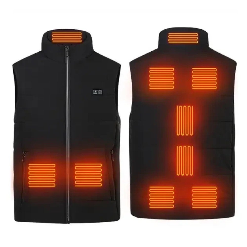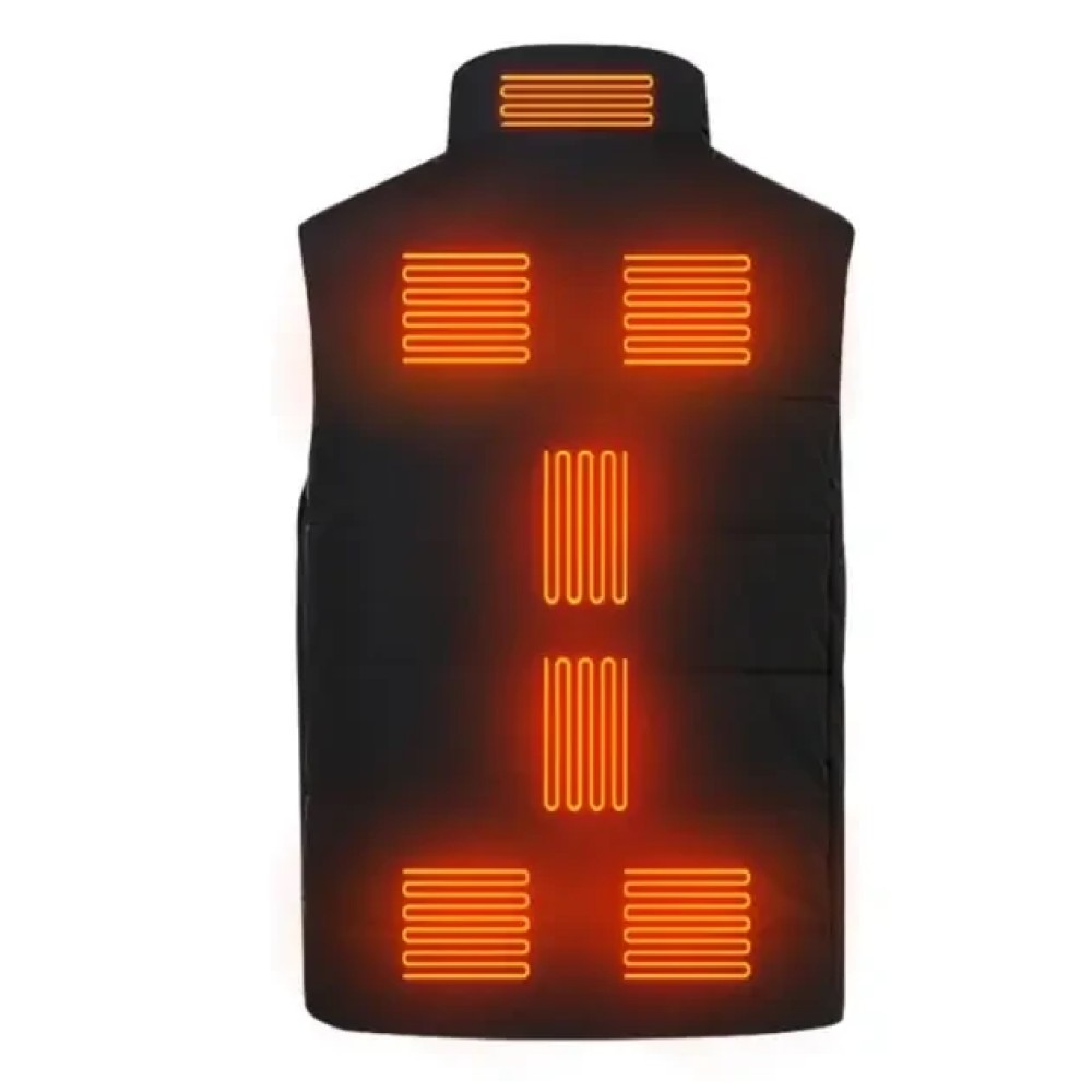 Жилетка з підігрівом через USB оснащена коміром і двома кнопками-термостатами для індивідуального регулювання нагріву. Має 9 зон обігріву і три режими регулювання температури: 40-60 °C. Виготовлена з високоякісної тканини: поліамідного волокна і нейлону, а як утеплювач використовується силіконізований синтепон. Нагрівальні елементи виконані з вуглецевого композитного волокна, що забезпечує швидкий нагрів і безпеку. Жилет підходить для носіння як верхнім шаром при помірних температурах, так і під одягом в умовах сильного холоду. Живлення здійснюється через універсальний USB-інтерфейс від PowerBank або інших джерел. Підходить для активного відпочинку, професійної діяльності на вулиці та профілактики застудних захворювань.