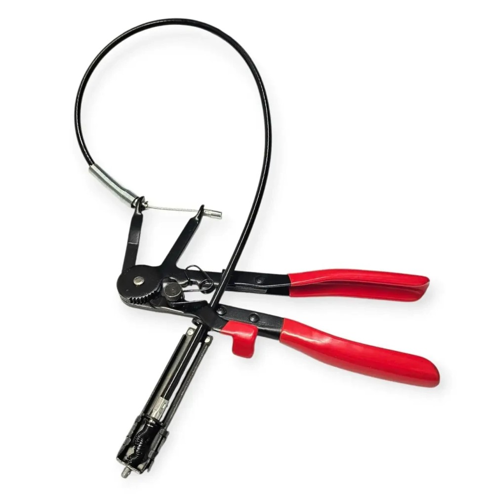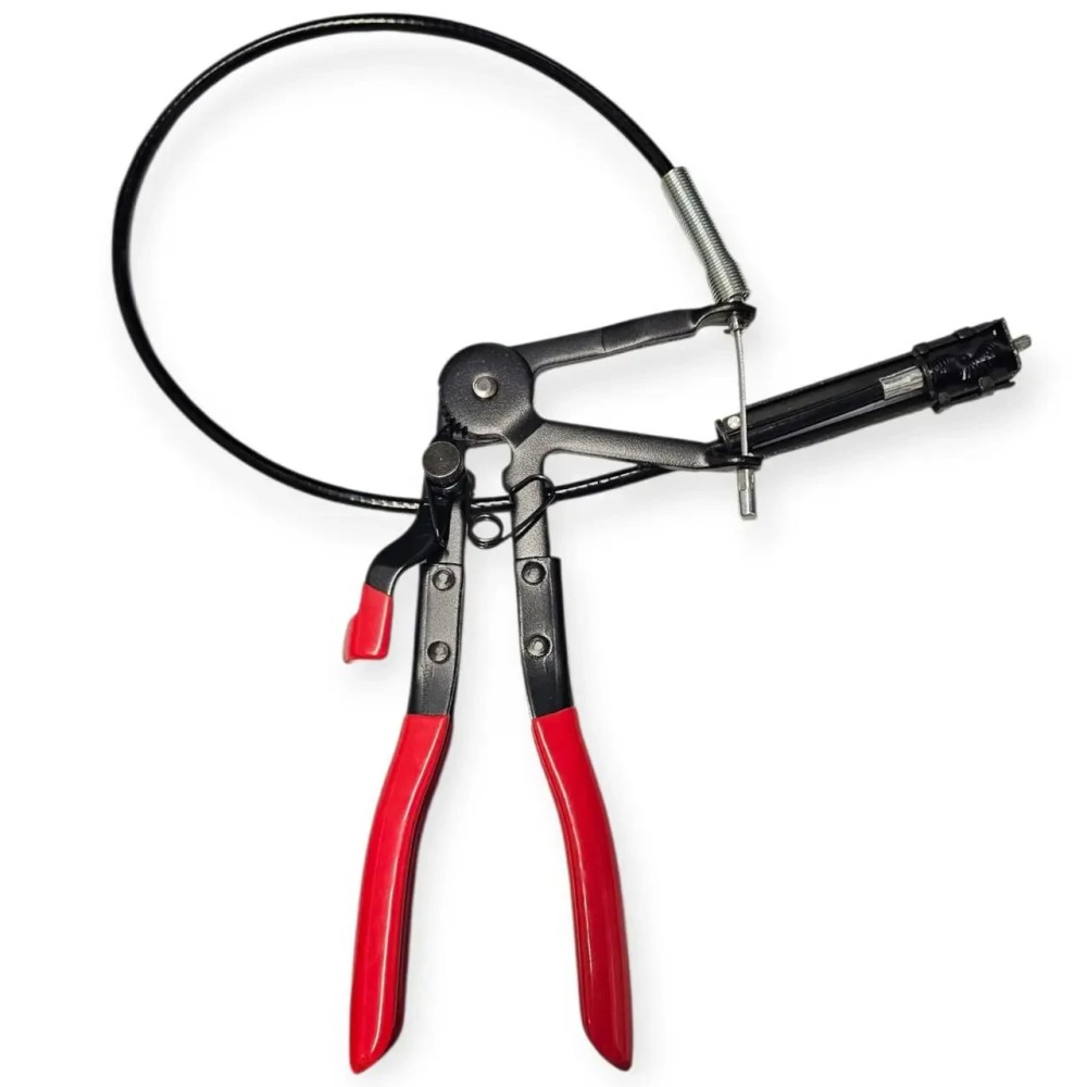 Опис Знімач для пружинних хомутів патрубків призначений для зручного демонтажу та встановлення хомутів у системах охолодження, вентиляції та інших вузлах автомобіля. Інструмент обладнаний гнучким тросом, який дає змогу працювати у вузьких і важкодоступних місцях. Наявність фіксатора забезпечує утримання хомута у відкритому положенні, спрощуючи виконання робіт. Ергономічні ручки забезпечують комфортне захоплення під час експлуатації. Рекомендується для професійного використання. Довжина подовжувача: 650 мм; Довжина інструмента: 225 мм; Максимальне захоплення: 50 мм. Інструмент виготовлений із високоміцних матеріалів. Переваги: Гнучкий трос для роботи у вузьких і важкодоступних місцях; Фіксатор для зручності роботи; Ергономічні ручки; Універсальність застосування.