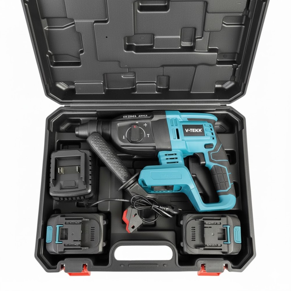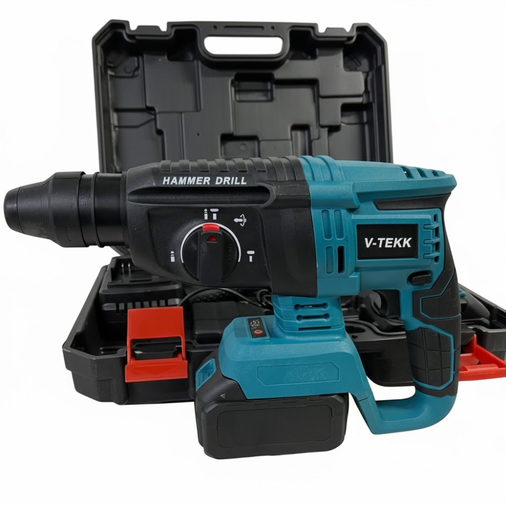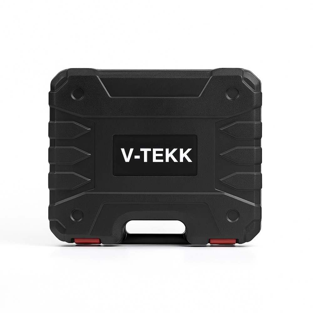Опис Акумуляторний дриль-перфоратор V-TEKK — потужний універсальний інструмент для свердління, закручування й ударного буріння без під'єднання до мережі. Ідеально підходить для дому, ремонту та професійних завдань — працює з деревом, металом, бетоном і цеглою. Переваги моделі V-TEKK: 2 в 1: режим свердління й ударний перфоратор. Літій-іонний акумулятор 18 В: довгий час роботи, немає «ефекту пам'яті». Компактний та збалансований корпус: зручно тримати однією рукою. Бездротова свобода: працюй будь-де — на будівництві, дачі, у гаражі. Регулювання швидкості та реверс: точне керування під будь-який тип матеріалу. Міцний редуктор і металевий патрон: надійність і довговічність. Застосування: свердління бетону, цегли, металу, дерева; монтажні та оздоблювальні роботи; встановлення меблів, карнизів, дюбелів; робота у важкодоступних місцях без розетки. Інструмент V-TEKK — це надійність, мобільність і потужність в одному корпусі. З ним ти завжди готовий до роботи — де завгодно та коли завгодно.