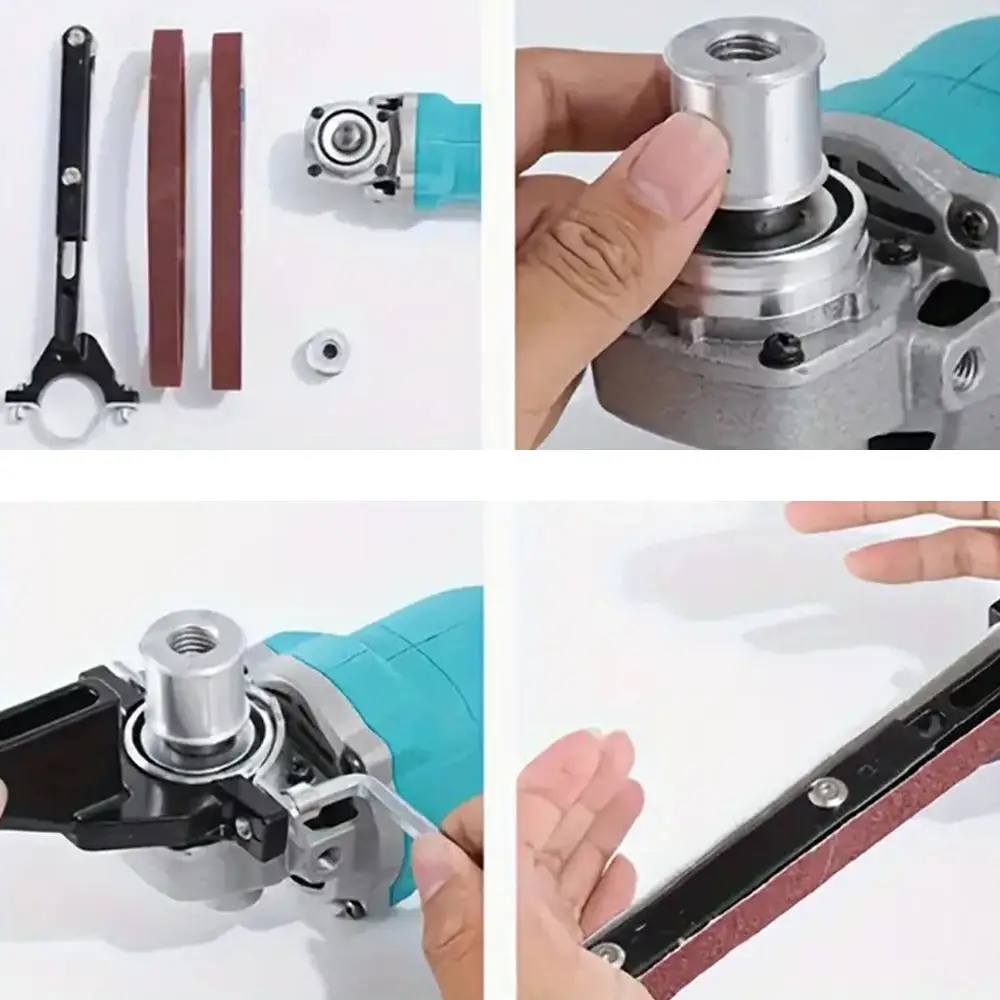 Опис Стрічкова шліфувальна насадка-адаптер для кутової шліфувальної машини призначена для перетворення стандартної КШМ (болгарки) на міністрічковий гриндер. Насадка сумісна з моделями КШМ, що мають різь шпинделя M10 или M14і підходить для дисків діаметром 100-125 мм. Пристрій призначений для операцій шліфування, полірування, зняття задирок, зачищення зварних швів і заточування інструментів на різних матеріалах, включно з металом, деревом і пластиком. Простота встановлення та компактний розмір забезпечують зручність роботи та розширюють функціональні можливості кутової шліфмашини. Переваги підходить для КШМ із різзю M10 и M14 швидко перетворює болгарку на стрічковий гриндер підходить для шліфування, полірування та зачищення універсальне застосування на різних матеріалах Характеристики Тип: стрічкова шліфувальна насадка-адаптер Сумісність: КШМ із різзю M10/M14 Діаметр диска: 100–125 мм Призначення: шліфування, полірування, зачищення, заточування Універсальність: підходить для металу, дерева, пластику Матеріал: метал + зносостійкий пластик Комплектація Стрічкова шліфувальна насадка-адаптер Набір змінних шліфувальних стрічок Кріпильні елементи Інструкція