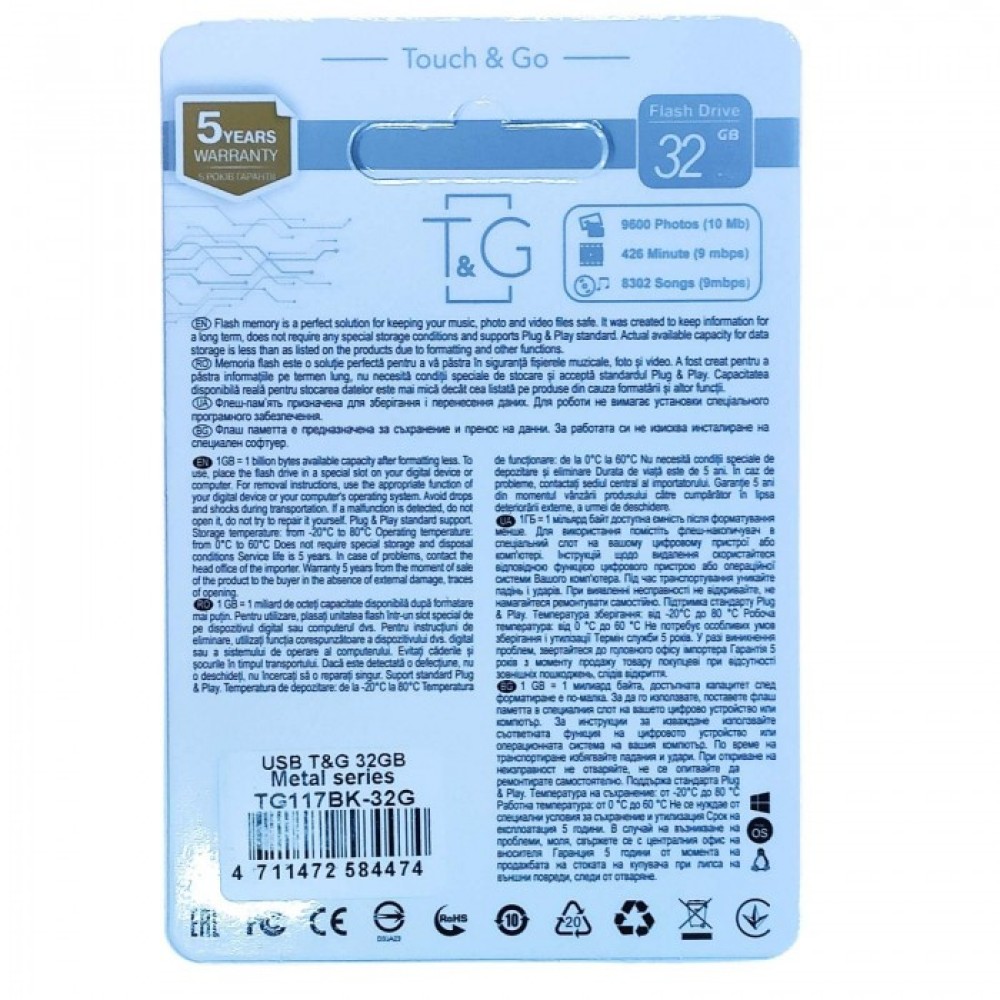 Эта флешка позволяет быстро передавать большое количество информации, от документов и фотографий до музыки и фильмов. Высокая скорость, внушительный объем и надежность хранения информации позволяют использовать накопитель как временное, так и небольшое постоянное хранилище данных. USB флеш T&G 32 GB совместим с любым считывающим устройством, оснащённым USB-портом. Для работы не требует специальной установки драйверов.