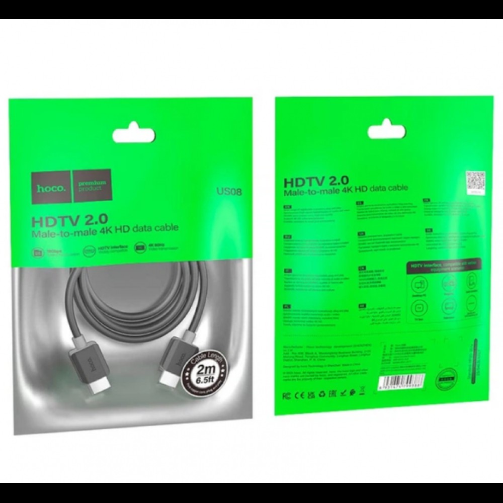 - Кабель для видео Hoco US08 HDTV 2.0 4K HD