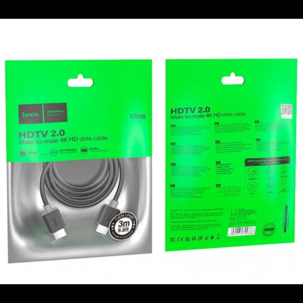 - Кабель для видео Hoco US08 HDTV 2.0 4K HD