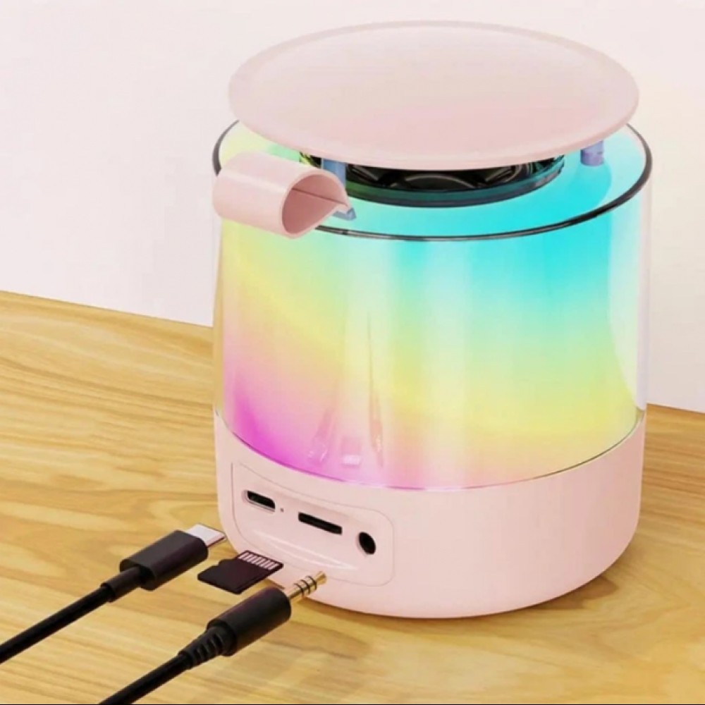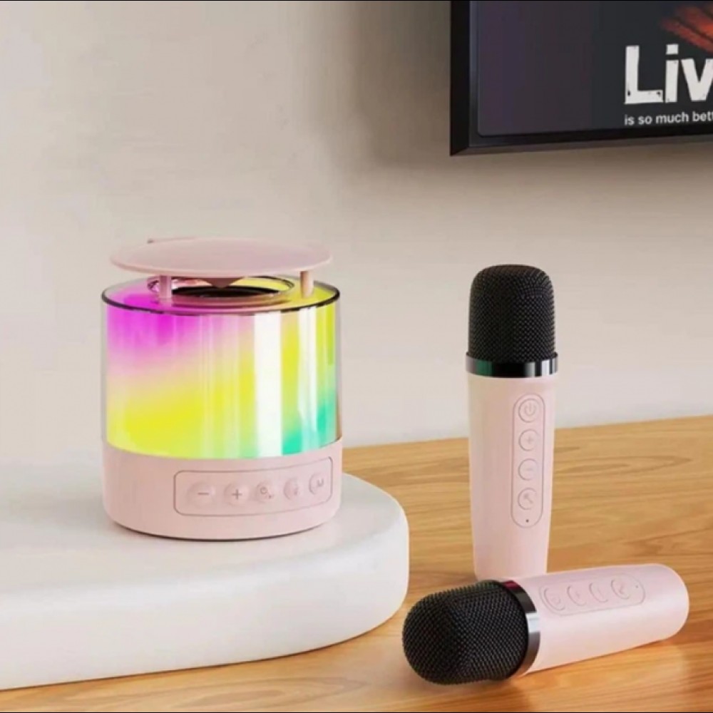 Портативная колонка K19 Bluetooth с LED-подсветкой и 2 микрофонами, караоке Розовая