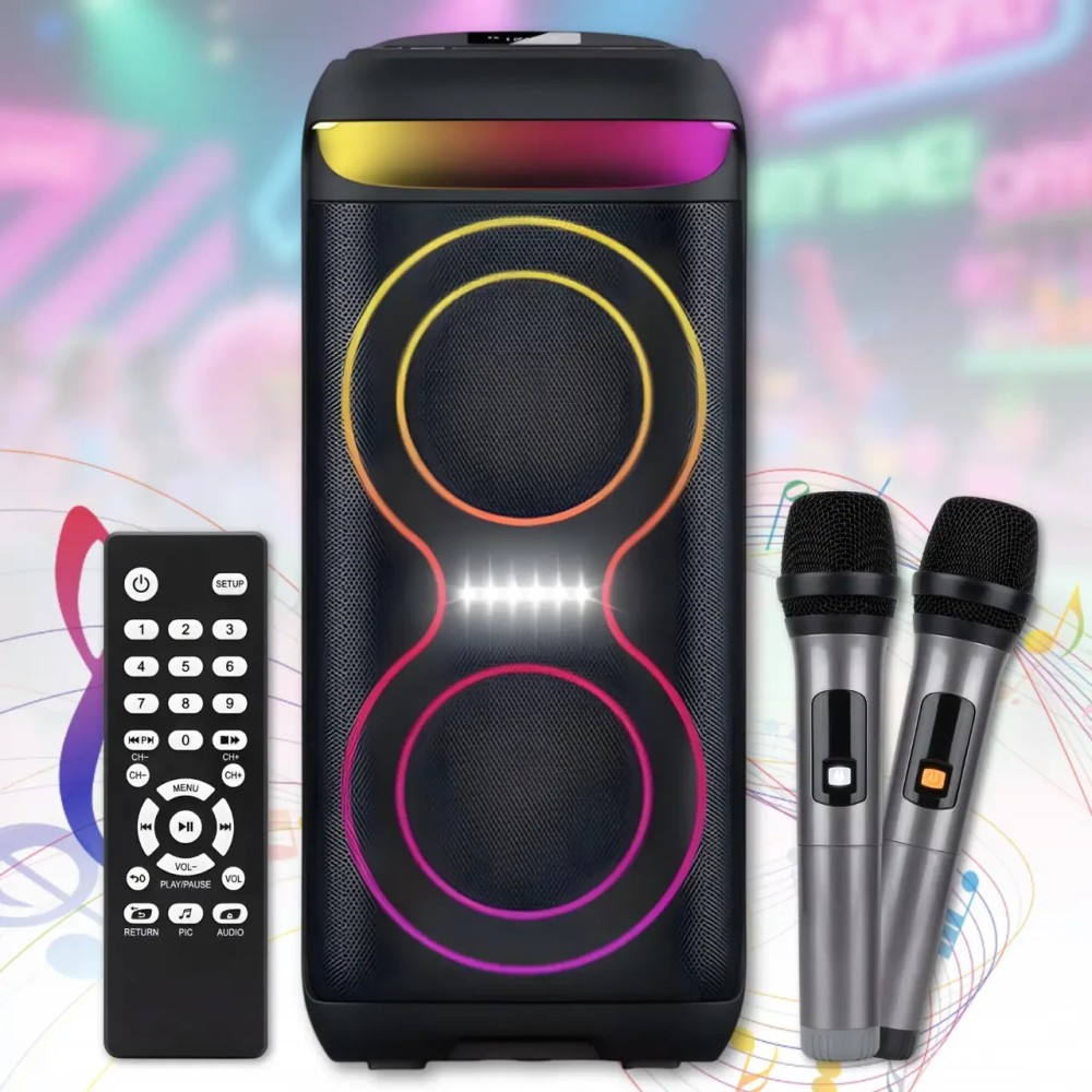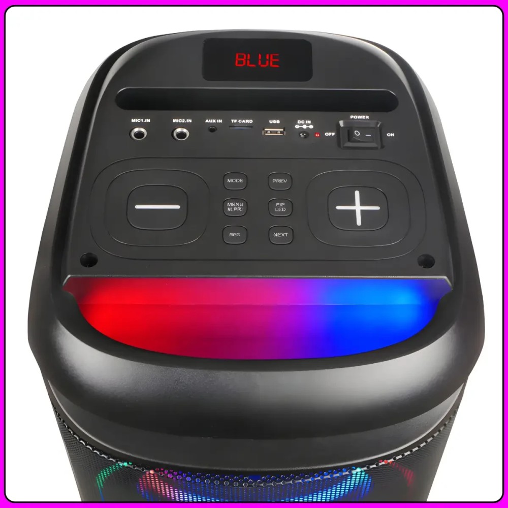 Акустична переносна колонка - це потужна портативна аудіосистема,призначена для відтворення музики зі смартфонів, планшетів та інших пристроїв через Bluetooth або дротяне підключення AUX 3.5 мм. Колонка оснащена двома динаміками діаметром 6.5 дюйма, які забезпечують насичений та гучний звук. LED-підсвічування створює ефектний світловий супровід, що змінюється в такт музиці, що робить пристрій відмінним вибором для вечірок, виступів та різноманітних заходів. Модель оснащена вбудованим акумулятором ємністю 3000 mAh, що забезпечує до 5 годин автономної роботи. Пристрій підтримує відтворення музики з USB-накопичувачів і TF-карт пам'яті, а також має вбудований FM-приймач. До комплекту входять два бездротові мікрофони, завдяки чому колонку можна використовувати для караоке та проведення заходів. Міцна конструкція корпусу з пластику та вбудована ручка забезпечують зручний транспорт. Переваги: