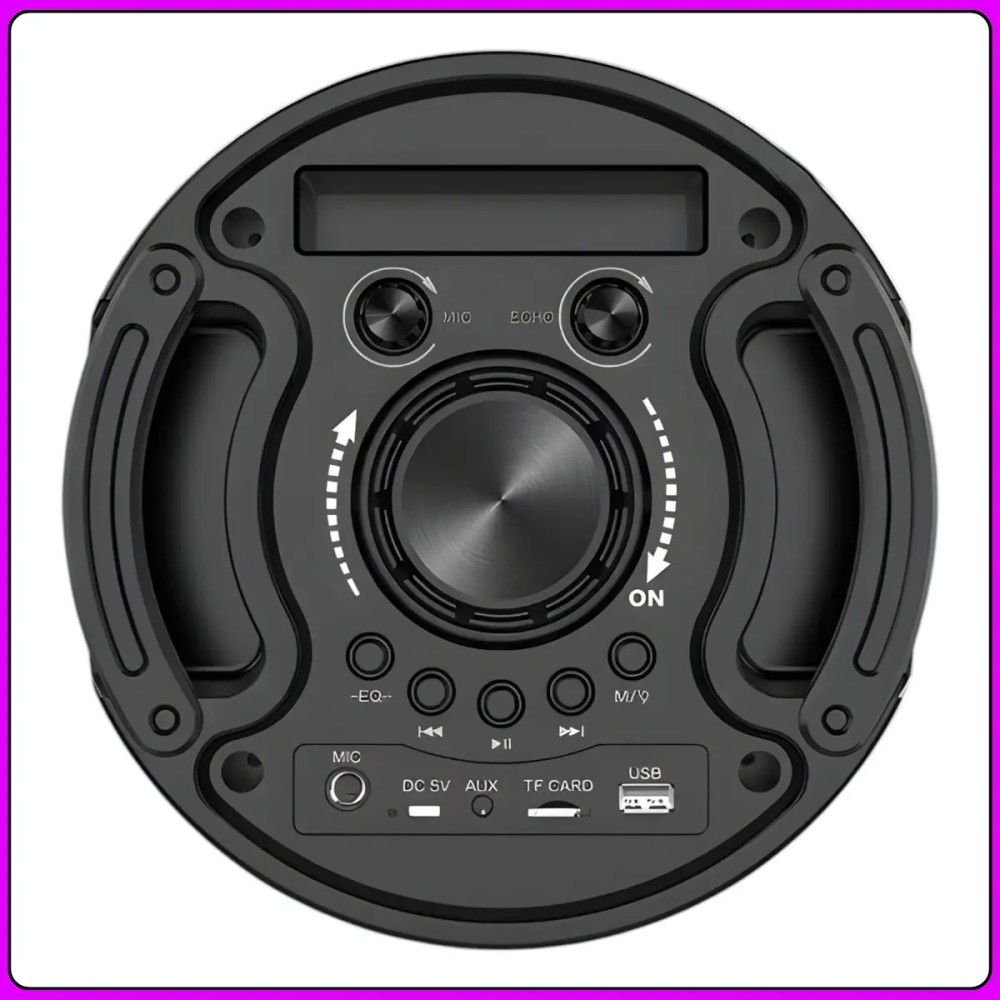 Портативна Bluetooth колонка JQS6221 - це компактна акустична система зі стереозвучаннямта потужністю 30 Вт, оснащена двома динаміками по 6,5 дюйма. Колонка призначена для відтворення музики вдома, на природі або на невеликих вечірках. Вбудований акумулятор ємністю 4500 мА·год забезпечує до 5-6 годин автономної роботи без підзарядки, а міцний пластиковий корпус чорного кольору робить пристрій довговічним та зручним для переносіння. Система підтримує бездротове підключення через Bluetooth 5.0,а також відтворення з USB-накопичувачів, карток пам'яті microSD і AUX-вхід. Функція TWS дозволяє об'єднувати дві колонки в одну стереопару для об'ємного звучання. Для караоке передбачений дротовий мікрофон, а пульт дистанційного управління спрощує настройку гучності та треків. Переваги:- Стереозвучання: два динаміки по 6,5 дюйма забезпечують чистий та гучний звук