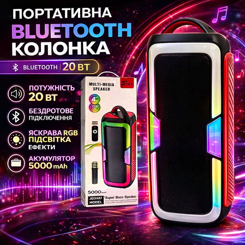 Портативна Bluetooth колонка JQS4407 20Вт з RGB підсвіткою та двома динаміками