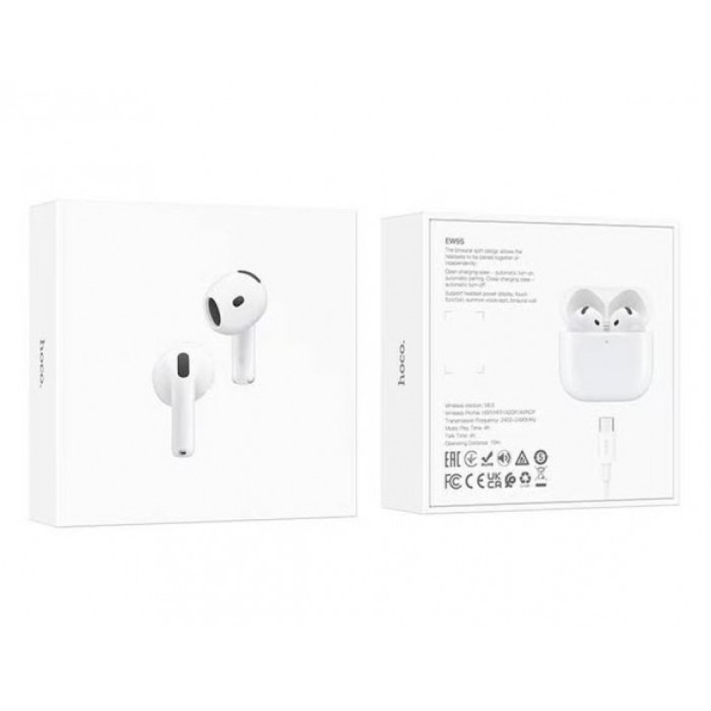 Hoco EW95 True Wireless Stereo — это стильные беспроводные наушники формата TWS, которые обеспечивают комфортное прослушивание музыки и удобное общение без использования проводов. Модель выполнена в минималистичном дизайне с глянцевым корпусом и компактным зарядным кейсом, благодаря чему наушники выглядят современно и легко помещаются в кармане или сумке.
