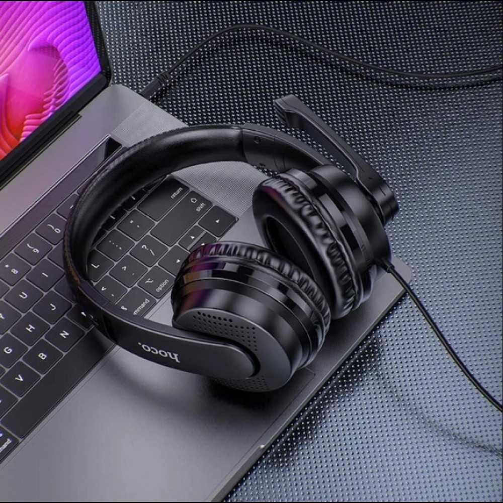 HOCO Gaming Magic Tour W103 — это проводные игровые наушники, которые обеспечивают идеальное сочетание стиля и функциональности. Эти наушники оснащены удобным регулировочным механизмом для управления громкостью и переключения микрофона, что делает их отличным выбором как для работы, так и для онлайн-игр.