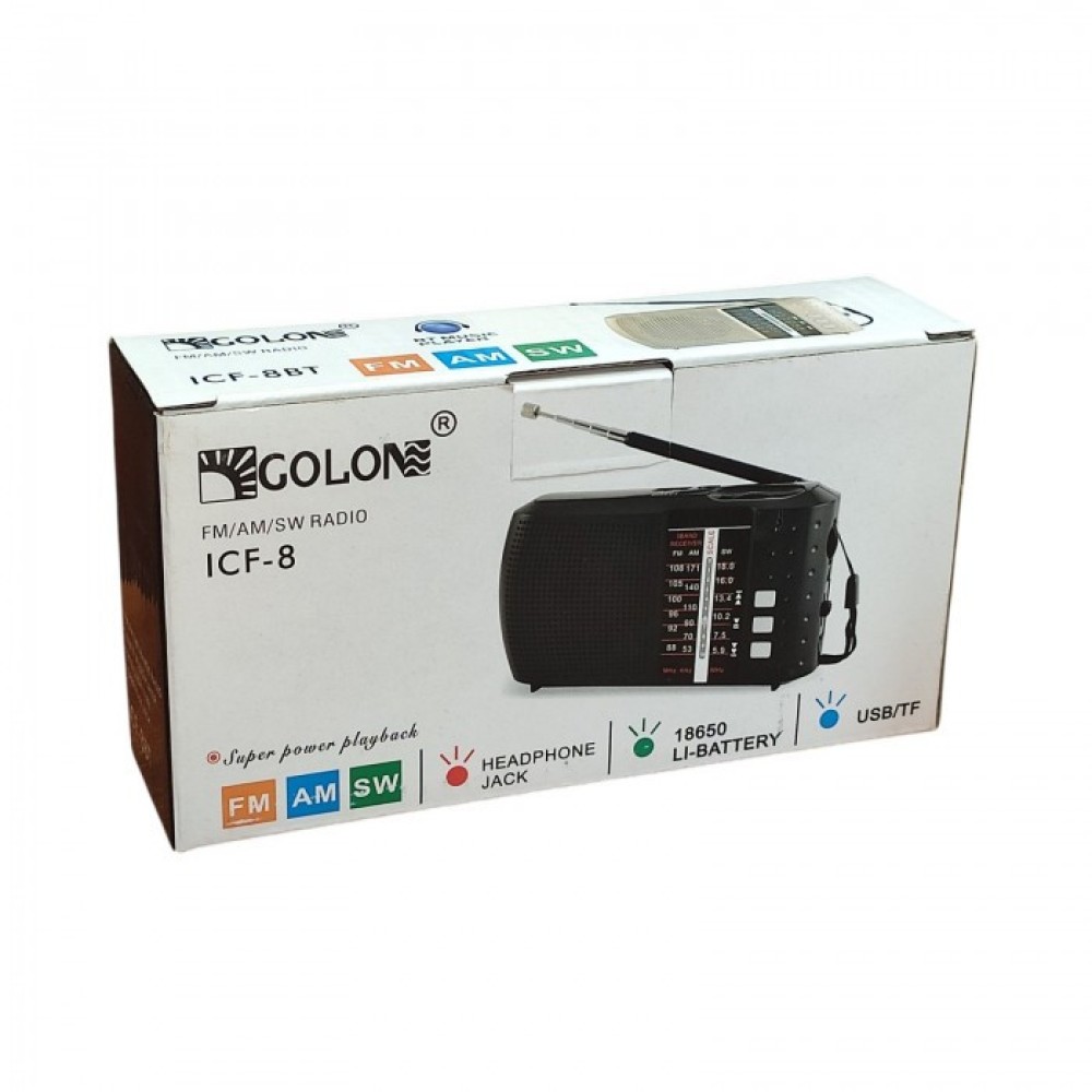 Радиоприемник мины GOLON – это стильный и современный радиоприемник с простым, механическим управлением, громкий звук, FM/AM/SW1-9, работает от съемного аккумулятора, который может работать без подзарядки до 8 часов, в зависимости от громкости поддержка MP3 формата. с 3-мя радио диапазонами - FV/SW/AM. питание от аккумулятора. Компактные размеры, мало займет места при транспортировке, уверенный сигнал приема, работа от аккумулятора – отличный выбор для дома, дачи, рыбаков, отдыха на природе.