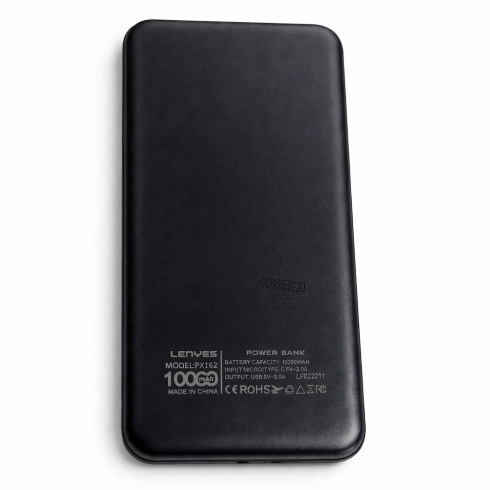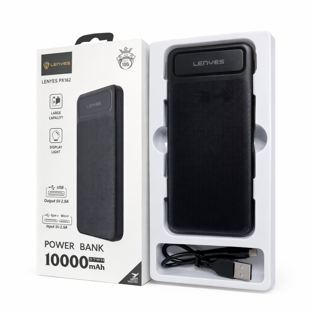 Power bank 10000 mAh Lenyes PX162 — практичний зовнішній акумулятор сумісний із різноманітними видами популярної техніки: Смартфони, Плеєри, Планшети, Навігатори, Камери, Електронні книги та ін. Оптимальна комплектація літієво-полімерного акумулятора, надійне виконання й ергономічне розміщення елементів перетворюють корисну річ на зручний девайс на кожен день. Алюмінієвий корпус ефективно захищає сучасну начинку пристрою від пошкоджень, легкість і оптимальна форма дають змогу носити апарат у сумці або кишені. Розташування кнопки увімкнення та портів пристосоване для оперативного використання девайса, Чотири світлодіодні індикатори, що залишилися. Приємне елегантне оформлення універсальне та підходить користувачам із різноманітними смаками. Можна купити й у подарунок, оскільки безумовно корисна та практична річ обов'язково стане в пригоді будь-якому власнику портативної техніки, який прагне до комфорту та насиченого життя. Переваги: LED-індикатор; Корпус виготовлений із надійного та міцного пластику; Велика ємність акумулятора — 10000 мА·год; Компактний, не займає багато місця. Основні характеристики: Тип призначення: зовнішній акумулятор; Заряджаються пристрої: смартфони, телефони, планшети та інші; Ємність: 10000 mAh; Заряджається через microUSB; Тип акумуляторів: Li-Ion; Матеріал корпусу: пластик; Вхід: DC 5V 2A; LED-індикатор; 2 USB-входи; Вихід: 5V 2.1А; Вихід: 5V 1А; Вихідний струм (A): 2. Розмір: 136*68*15,6 мм Вага: 219 грам Комплектація Power Bank 10000 mAh Lenyes PX162. Кабель USB/microUSB. Паковання.