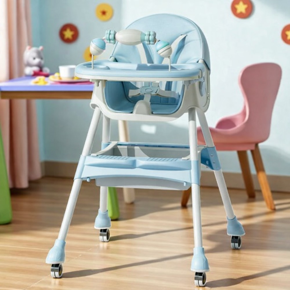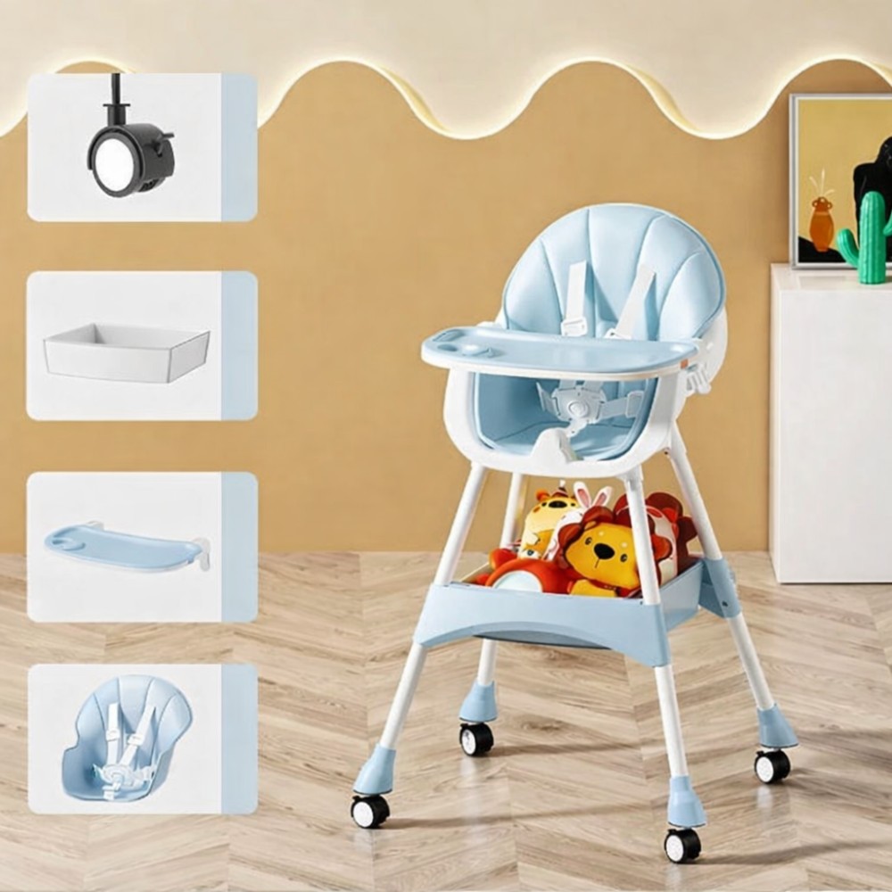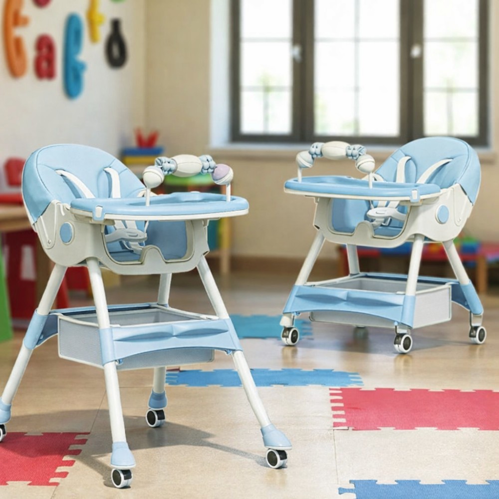 Опис → Дитячий стільчик-трансформер F005 у блакитному кольорі — універсальне рішення для годування, ігор і відпочинку малюка в домашніх умовах. Спокійний і нейтральний відтінок чудово підійде як для хлопчиків, так і для універсального інтер'єру дитячої кімнати. Модель поєднує функції стільчика для годування, ігрового крісла та зручного крісла для відпочинку. Регульована спинка дає змогу вибрати оптимальне положення для приймання їжі або розслаблення, а знімна подвійна таця забезпечує зручність і простоту догляду. П'ятиточкові ремені безпеки надійно фіксують дитину, забезпечуючи високий рівень захисту. Колеса дають змогу легко переміщати стільчик по дому, а місткий нижній кошик підходить для зберігання іграшок і аксесуарів. Міцна конструкція розрахована на щоденне використання і підходить для дітей від 6 місяців до 3 років. Переваги → Універсальний стільчик 3-в-1: для годування, ігор і відпочинку Спокійний блакитний колір — універсальний варіант Регульована спинка з кількома положеннями Знімна подвійна таця — легко мити П'ятиточкові ремені безпеки Колеса для зручного переміщення Нижній кошик для зберігання Стійка та міцна конструкція