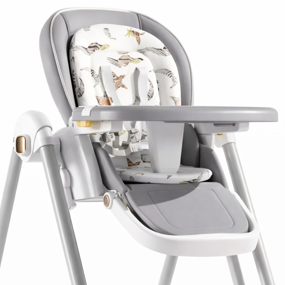 Опис Багатофункціональний дитячий стільчик-шезлонг 2в1 — це зручне й безпечне рішення для малюка від перших місяців життя. Модель поєднує в собі роль стільчика для годування, затишного шезлонга и легких гойдалок, забезпечуючи комфорт дитини під час їжі, відпочинку та ігор. Конструкція обладнана регульованою спинкою з декількома рівнями нахилу, що дає змогу адаптувати сидіння під будь-яку ситуацію — вид сидячого положення для годування до напівлежачи для відпочинку. Надійна 5-точкова система ременів безпеки гарантує стабільність і утримання малюка на місці. Завдяки коліщаткам із фіксаторами стільчик легко переміщається будинком, а складаний механізм полегшує зберігання й економить простір. Знімна таця дає змогу підтримувати чистоту та використовувати стільчик у різних режимах. Переваги 3-в-1: стільчик для годування, шезлонг і легка гойдалка Регулювання спинки для комфортного положення малюка 5-точкові ремені безпеки Знімна таця для зручного прибирання Колеса для легкого переміщення Складана конструкція — економія місця Стійка, безпечна конструкція Підходить для дітей різного віку Характеристики Параметри Значення Тип вироби Стільчик-шезлонг 2в1 Вік Від 0 місяців Регулювання спинки Є, багатопозиційна Ремені безпеки 5-точкові Поднос Знімний Колеса 4 шт. з фіксацією Конструкція Складана Матеріал Пластик + тканинна м'яка вставка Колір Сірий (універсальний) Стать дитини Унісекс Комплектація Стільчик-шезлонг — 1 шт. Знімна таця — 1 шт. Колеса — 4 шт. М'яка знімна вкладка — 1 шт.