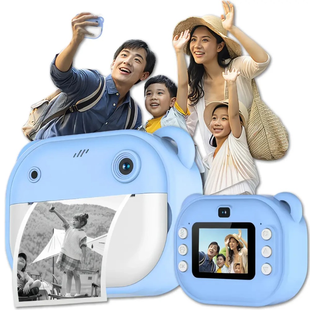 Опис Дитячий фотоапарат миттєвого друку JE-ET у синьому кольорі — це зручна камера та мініпринтер в одному корпусі. Дитина робить кадр, і вже за кілька секунд готове чорно-біле фото на термопапері. Жодних картриджів і чорнила — тільки рулон паперу та заряд акумулятора. Корпус розроблений спеціально для дітей: легкий, компактний, з округлими формами та великими кнопками. Синій колір подобається дітям і підходить як хлопчикам, так і дівчаткам. Камеру зручно брати на прогулянку, у поїздку, на день народження або в дитячий садок. Переваги Миттєвий друк знімків — фото відразу виходить з апарата на термопапері. Дві камери — основна та фронтальна, можна робити звичайні знімки та селфі. Фото до 24 Мп (інтерполяція) — чіткі кадри для дитячого альбому. Видео формата Full HD — камера записує не тільки фото, а й ролики. Екран 2,4" — зручно переглядати зроблені знімки та настроювати меню. Підтримка карти пам'яті microSD — зберігання великої кількості фото та відео. Вбудований акумулятор — заряджання через USB, можна під'єднати до павербанка. Безпечні матеріали — міцний пластиковий корпус із захистом від ударів. Характеристики Тип: дитячий цифровий фотоапарат із термопринтером Колір корпусу: синій Роздільна здатність фото: до 24 Мп (інтерполяція) Видео: до 1920×1080 Екран: 2,4" кольоровий Друк: термопапір, чорно-білі знімки Підтримка карт пам'яті: microSD (рекомендується до 32 ГБ) Живлення: вбудований акумулятор, заряджання від USB 5 В Матеріал корпусу: пластик Комплектація Дитячий фотоапарат-принтер JE-ET (синій) 2 рулони термопаперу USB-кабель для заряджання Ремінець на зап'ястку Інструкція