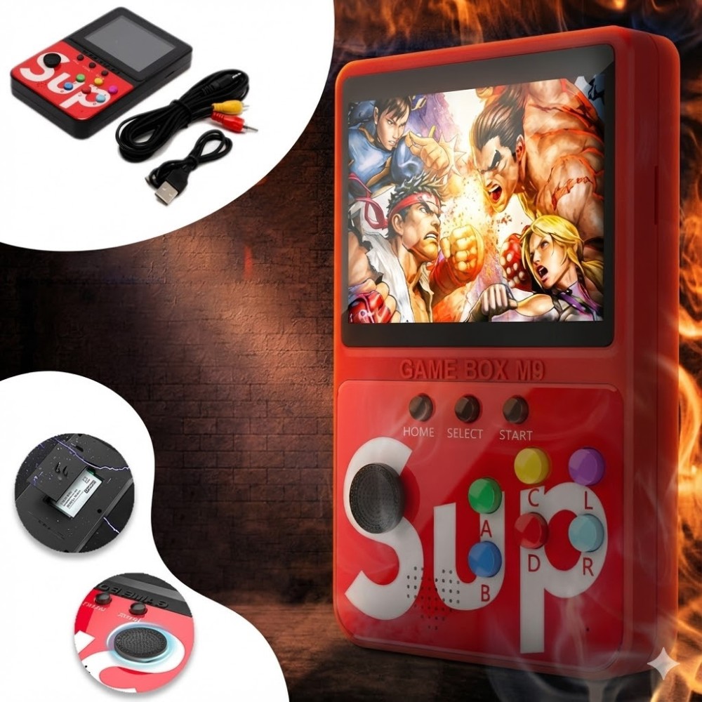 Опис Кратко о товаре Sup M9 — компактна ігрова приставка з 900 вбудованими ретро-іграми. Зручна в дорозі, вдома або як подарунок. Працює автономно від акумулятора, підтримує під'єднання до телевізора. Переваги: 900 вбудованих ігор — платформери, аркади, перегони та логічні Кольоровий екран 3 дюйми — можна грати без ТВ Акумулятор 1200 мА·год — до 4 годин автономної гри Компактний корпус — зручно носити із собою Під'єднання до телевізора через AV — можливість грати на великому екрані Заряджання через USB — підходить від будь-якого адаптера або павербанка Характеристики: Модель: Sup M9 Тип: портативна ігрова консоль Кількість ігор: 900 Екран: 3.0| TFT Акумулятор: 1200 мА·год Інтерфейс заряджання: USB Під'єднання до ТВ: AV Колір: чорний Розміри: 12.5 × 8 × 2.3 см Вага: ~150 г Комплектація Приставка Sup M9 USB-кабель AV-кабель Інструкція (якщо передбачено) Рекомендации: Підходить для дітей від 6 років і дорослих Чудовий подарунок, особливо для шанувальників ретроігор Зручна в поїздках, у транспорті або вдома