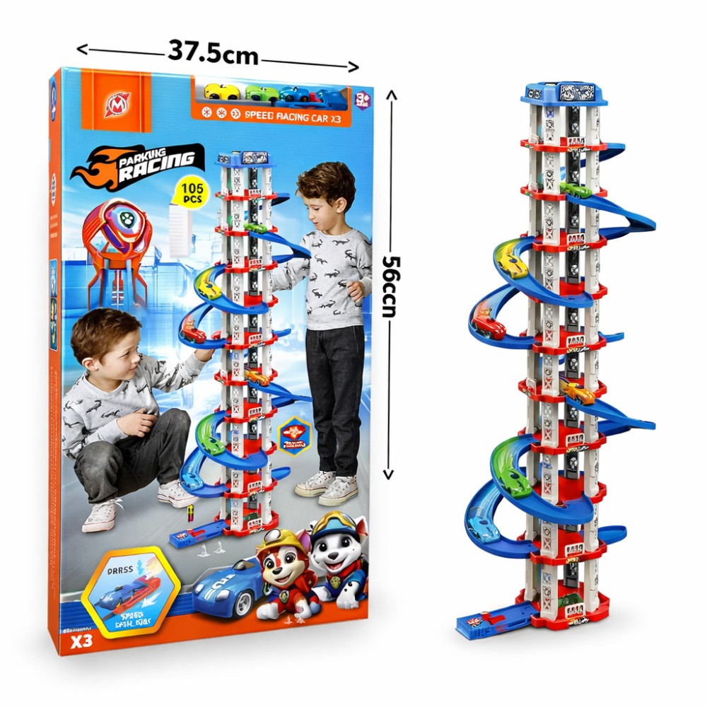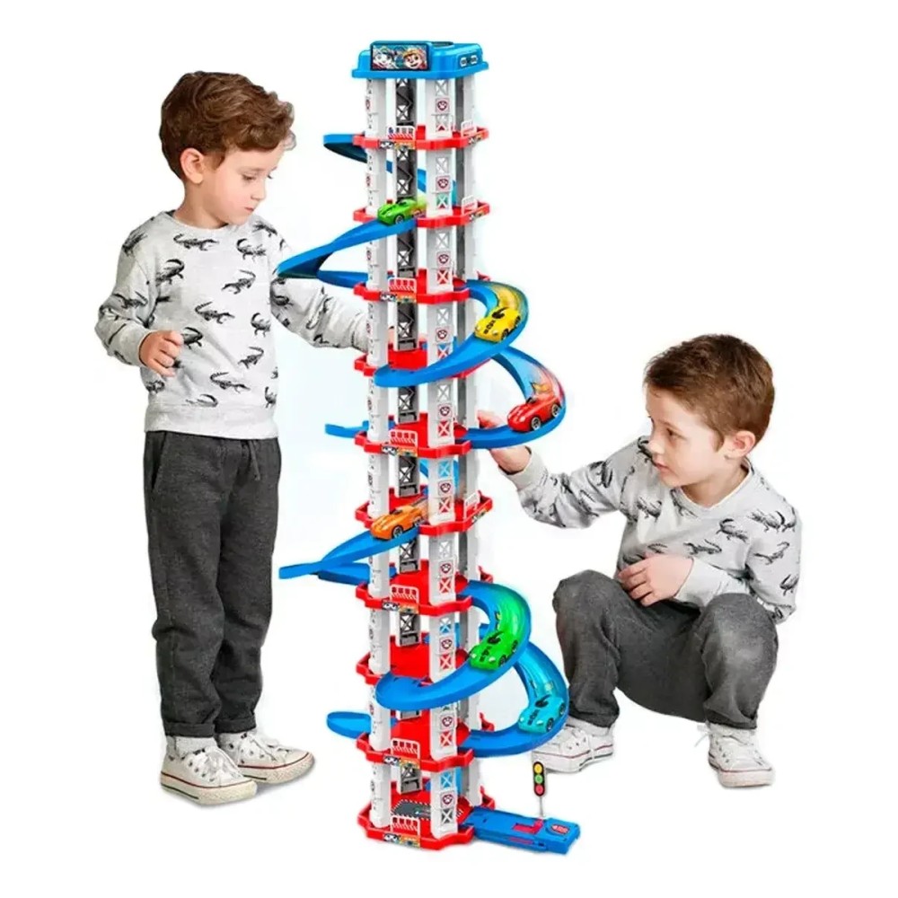 Children’s Rail Car MH2006 — це багаторівневий ігровий автотрек-паркінг, що складається зі 105 елементів та дозволяє зібрати високу вертикальну трасу з парковочними рівнями та спусками. Конструкція має центральну вежу та кілька рівнів із вигнутими спіральними спусками. Орієнтовна висота зібраної конструкції — близько 70 см, ширина — приблизно 28 см. Підходить для дітей від 3 років. Комплектація У комплект входить: Деталі треку та опорні елементи (загалом 105 деталей) 3 перегонові автомобілі Додаткові елементи конструкції (аксесуари) Конструкція та матеріали Тип: багаторівневий автотрек-паркінг Формат: вертикальна вежа зі спусками Матеріал деталей: пластик Кольори елементів: червоні опори та центральна конструкція, сині, зелені та жовті елементи треку Трек оснащений кнопкою запуску автомобілів, що дозволяє починати рух машинок по трасі. Як використовується З деталей збирається багаторівнева траса. Машинки встановлюються у верхній частині конструкції. За допомогою кнопки запуску автомобілі починають рух по спіральних спусках. Машинки проходять рівні траси та спускаються вниз. Гра передбачає самостійне складання конструкції, після чого дитина може запускати машинки та змінювати сценарії гри. Для кого підходить Рекомендовано для дітей від 3 років. Підходить для: гри вдома активних сюжетних ігор взаємодії кількох дітей одночасно Основні характеристики Модель: Children’s Rail Car MH2006 Тип: перегонова траса-паркінг Кількість деталей: 105 елементів Кількість машинок: 3 шт Орієнтовна висота конструкції: ~70 см Орієнтовна ширина: ~28 см Вік: від 3 років Стан: новий