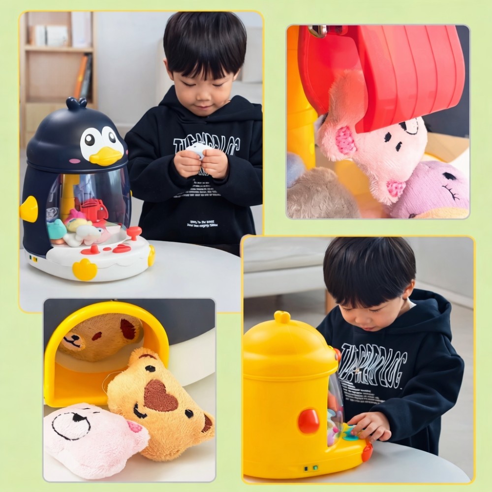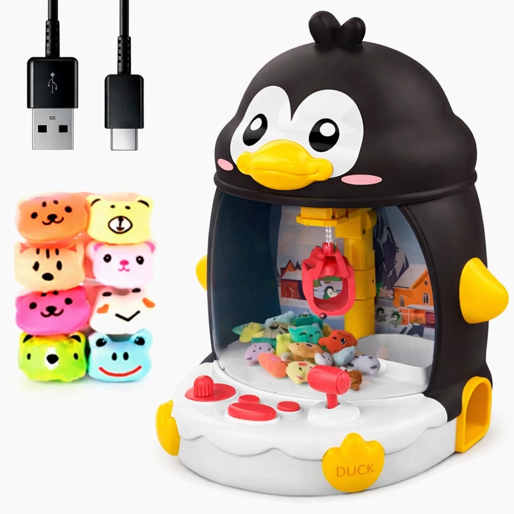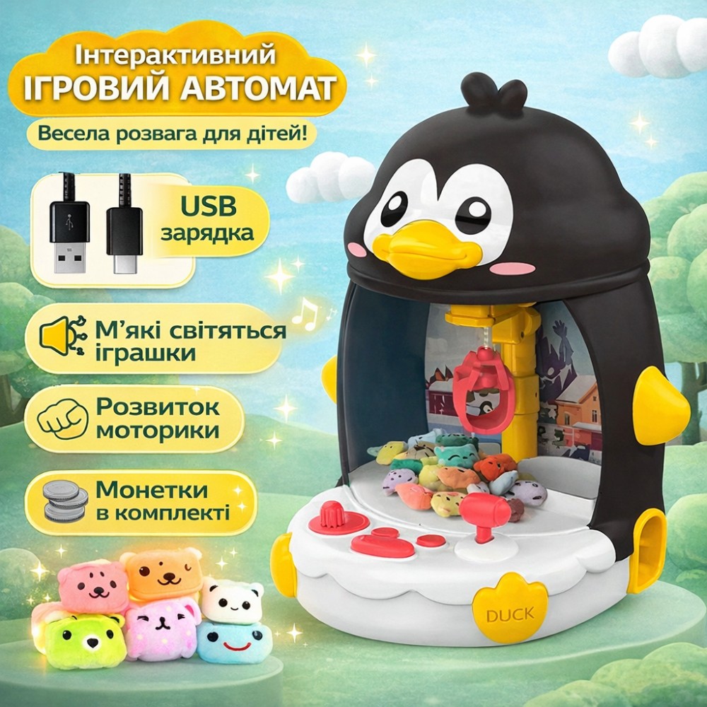 Опис: Інтерактивна іграшка у формі пінгвіна пропонує дітям захопливе та розвивальне заняття. Вона функціонує як мініманіпулятор: за допомогою кнопок керування дитина може переміщати лапку-захоплення для вилучення іграшок із прозорого простору. Цей процес сприяє розвитку дрібної моторики, уважності та координації рухів. Прозора панель дає змогу спостерігати за грою, а світлові та звукові ефекти роблять її ще захопливішою. Усередині розміщені маленькі іграшки, які можна ловити або замінювати іншими дрібними предметами. Ця розвивальна іграшка стане чудовим подарунком для дітей від 3 років, об'єднуючи в собі розвагу та навчання. Ігрове навчання з радістю — увага, моторні навички та реакція. Переваги: Яскравий і привабливий дизайн у формі пінгвіна Працює від акумулятора або батарей Світлові та звукові ефекти в процесі гри Сприяє розвитку координації, реакції й уважності Прозорий корпус для спостереження за ігровим процесом Ідеально підходить для домашнього використання, свят і як подарунок Зручні кнопки керування, які підходять для дітей До комплекту входять маленькі іграшки-призи Характеристики: Тип: інтерактивна іграшка з маніпулятором Стать: унісекс Вік: від 3 років Особливості: музичні та світлові ефекти Додаткові аксесуари: маленькі м'які іграшки Живлення: від акумулятора Додаткове живлення: батарейки АА – 4 шт. (в комплект не входять) Зарядка: от USB Матеріал корпусу: ABS пластик Матеріал іграшок: текстиль Розмір: 33×29×26 см Персонажі: Пінгвін, Каченя Комплектація Іграшка з маніпулятором 8 м'яких іграшок USB-кабель Паковання