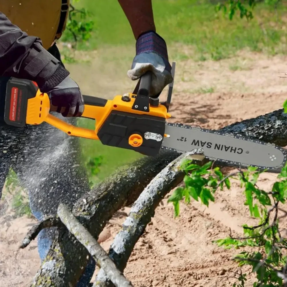 Опис товару Акумуляторна ланцюгова пила — це потужний і зручний електроінструмент для роботи з деревиною без дротів і бензину. Модель із довжиною шини 12 дюймів (≈30 см) працює від двох акумуляторів 21 В (Li-ion), що забезпечує тривалий час експлуатації та свободу рухів під час розпилювання гілок, колод, дощок та інших матеріалів. Електропила обладнана міцним ланцюгом і напрямною шиною для ефективного різання, зручною ручкою для комфортної роботи, а також постачається в кейсе для зберігання і транспортування. Такий інструмент стане надійним помічником як у саду, так і в домашніх господарських роботах. Переваги Працює від акумуляторів — жодних дротів і обмежень за місцем У комплекті два акумулятори 21 В для тривалої роботи Легка та компактна конструкція Зручна ручка для контролю й безпеки Міцний кейс для зберігання й перенесення Идеальна для садових робіт, обрізання дерев і заготівлі дров Технічні характеристики Тип: акумуляторна ланцюгова пила Довжина шини: 12 дюймів (≈30 см)Живлення: акумулятор Напруга акумулятора: 21 В Кількість акумуляторів: 2 Тип акумулятора: літій-іонний (Li-ion) Комплектація: пила, 2 акумулятори, зарядний пристрій, кейс, комплект ланцюга та напрямна шина Комплектація Акумуляторна ланцюгова пила Акумулятор Li-ion 21 В × 2 Зарядний пристрій Напрямна шина та ланцюг Міцний кейс Інструкція з експлуатації