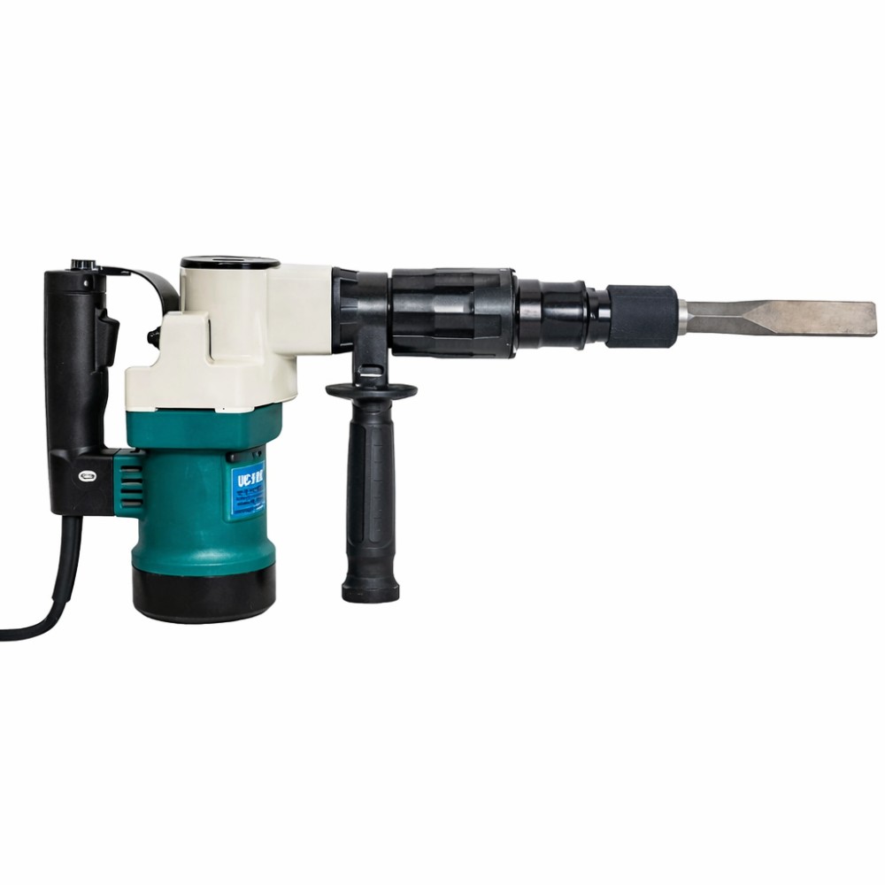 Призначення: Цей відбійний молоток класу "5 кг" — ідеальний інструмент для ремонтно-будівельних робіт середньої важкості. Його головна перевага — баланс ваги та потужності. Він достатньо легкий, щоб працювати горизонтально (збивати стару плитку, штукатурку, робити штроби у стінах), але має достатню силу удару для руйнування цегляної кладки та бетонних стяжок. Технічні характеристики та продуктивність: Двигун 900 Вт: Забезпечує стабільну роботу під навантаженням. Мідна обмотка двигуна (стандарт для цього класу) стійка до перегріву при тривалих циклах роботи. Висока частота удару (2900–3000 уд/хв): Інструмент працює за рахунок швидкості та частоти, ефективно кришачи матеріал без необхідності сильно тиснути на ручку. Патрон HEX (Шестигранник 17 мм): Надійна система фіксації оснастки. Зубило не прокручується і легко замінюється одним рухом фіксатора. Ергономіка та зручність: Фіксатор кнопки пуску (Lock-on): Збоку на рукоятці розташована кнопка блокування, яка дозволяє працювати в безперервному режимі. Палець не втомлюється тримати курок. Поворотна бічна ручка (360°): Додаткову рукоятку можна встановити під будь-яким кутом для зручного хвату лівою або правою рукою. Металевий корпус редуктора: Забезпечує краще відведення тепла та захищає механізм від ударів на будмайданчику. Комплектація (Готовий до роботи з коробки): Електричний відбійний молоток. Зубило гостре (Піка) — для пробивання отворів та розколювання бетону. Зубило пласке (Долото) — для зняття плитки, штукатурки та вирівнювання країв. Гайковий ключ для обслуговування. Інструкція.