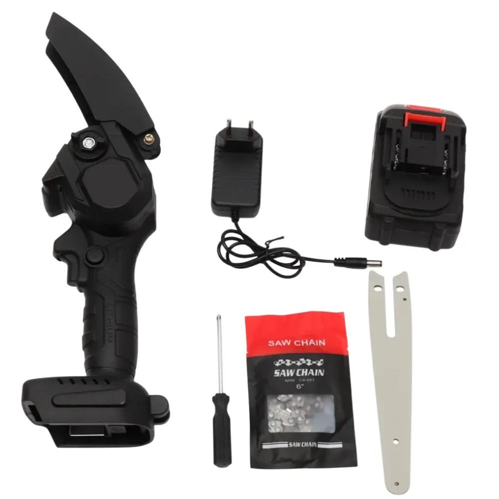 Пила 48V на 6 дюймів з 1 акумулятором у кейсі Акумуляторна ланцюгова пила 6 дюймів 48V — це компактний, але потужний інструмент, розроблений для легкої й ефективної роботи з деревом. Вона ідеально підходить для обрізання дерев, чагарників, підготовки дров, розпилювання дерев'яних балок, а також дрібних будівельних завдань. Пила легко керується однією рукою й забезпечує точність різання завдяки продуманій ергономіці, зручній ручці та збалансованій конструкції. Електродвигун із повітряним охолодженням гарантує стабільну продуктивність навіть за інтенсивного використання. ???? Застосування: Обрізання та формування гілок дерев і чагарників Заготівка дров і розпилювання брусів до 15 см у діаметрі Видалення садових відходів Будівельні та щільнуваті роботи на дачі або в приватному господарстві Роботи у важкодоступних місцях завдяки компактним розмірам пили ✅ Переваги: Компактність і легкість — пила важить небагато і чудово керується однією рукою Потужний двигун — забезпечує високу швидкість і продуктивність різання Швидке та гладке різання — професійний ланцюг не застрягає в матеріалі Підвищена безпека — обладнана захисною кнопкою від випадкового запуску та запобіжними щитками Ергономіка — зручна нековзна ручка та балансування корпусу підвищують комфорт Швидке заряджання та висока ємність акумуляторів — дають змогу працювати довше без перерви Універсальність — підходить для широкого спектра побутових і садових завдань ???? Характеристики: Тип виробу: акумуляторна ланцюгова пила Призначення: різання гілок, дерев, чагарників, дощок та інших дерев'яних заготівок Тип живлення: акумуляторна Кількість акумуляторів у комплекті: 1 шт Тип акумулятора: літій-іонний (Li-ion) Напруга акумулятора: 48 В Час повного заряджання: приблизно 1,5 годин Тривалість роботи на одному заряді: до 40–60 хвилин (залежно від навантаження) Тип двигуна: щітковий (колекторний), із системою повітряного охолодження Швидкість руху ланцюга: до 5 м/с (регулюється натисканням на курок) Довжина шини: 6 дюймів (15,24 см) Матеріал корпусу: міцний АБС-пластик Матеріал руків'я: протиковзний АБС-пластик із рельєфною текстурою Колір корпусу: чорний Особливості конструкції: компактний розмір і мала вага асиметрична форма корпусу для кращого огляду лінії різу кнопка блокування від випадкового увімкнення запобіжний захист від розльоту тирси Розміри корпусу (Д х Ш х В): 36 х 12 х 11 см Загальна довжина інструмента з акумулятором: 40,5 см Рівень шуму: середній, залежить від навантаження Умови експлуатації: для роботи на відкритому повітрі або в приміщенні за температури від +5 °C до +35 °C ???? Комплектація Акумуляторна пила — 1 шт. Аккумулятор 48V — 1 шт Зарядний пристрій — 1 шт. Шина 6 дюймів — 1 шт. Ланцюг 6 дюймів — 1 шт. Захист — 1 шт Отвертка — 1 шт Пластиковий кейс — 1 шт.