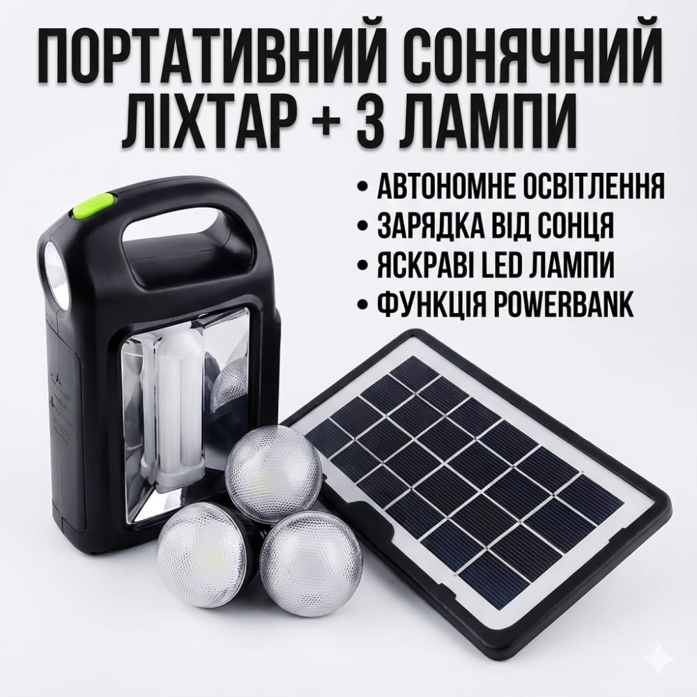 Опис товару: CClamp CL-02 — автономний ліхтар із сонячною панеллю і 3 LED-лампами для освітлення й заряджання пристроїв у будь-яких умовах. Підходить для дачі, дому, кемпінгу, аварійних вимкнень світла. Заряджається від сонця й працює до 30 годин без під'єднання до мережі. ???? Переваги: Повний комплект автономного освітлення 3 світлодіодні лампи з 4-метровими кабелями — освітлення відразу в декількох зонах Сонячна панель 4 Вт — заряджання, навіть якщо немає електрики Функція Power Bank — заряджання телефона через USB Зручний форм-фактор — можна ставити або переносити за ручку До 30 годин автономної роботи ???? Характеристики: Модель: CClamp CL-02 Тип: автономний ліхтар із комплектом ламп Потужність ліхтаря: 3 Вт Кількість режимів: 1 (основний) Кількість LED-ламп: 3 шт Потужність ламп: 3 Вт кожна Довжина кабелю ламп: 4 м Живлення: від вбудованого акумулятора Заряджання: від сонячної панелі 4 Вт Вихід: USB 5V — для заряджання ґаджетів Час роботи: 10-30 год Розмір панелі: 270×155×13 мм Призначення: дача, будинок, кемпінг, аварійне освітлення Термін служби: ≥5 років ???? Комплектація Ліхтар CClamp CL-02 Сонячна панель 3 світлодіодні лампи Кабель зарядки 5-в-1 Паковання ???? Рекомендації щодо застосування: Використовуйте ліхтар як джерело світла під час вимкнення електрики, на дачі, у поході або для освітлення двору. Лампи можна розмістити в різних кімнатах або зонах, а заряджання телефона забезпечить зв'язок у будь-якій ситуації.