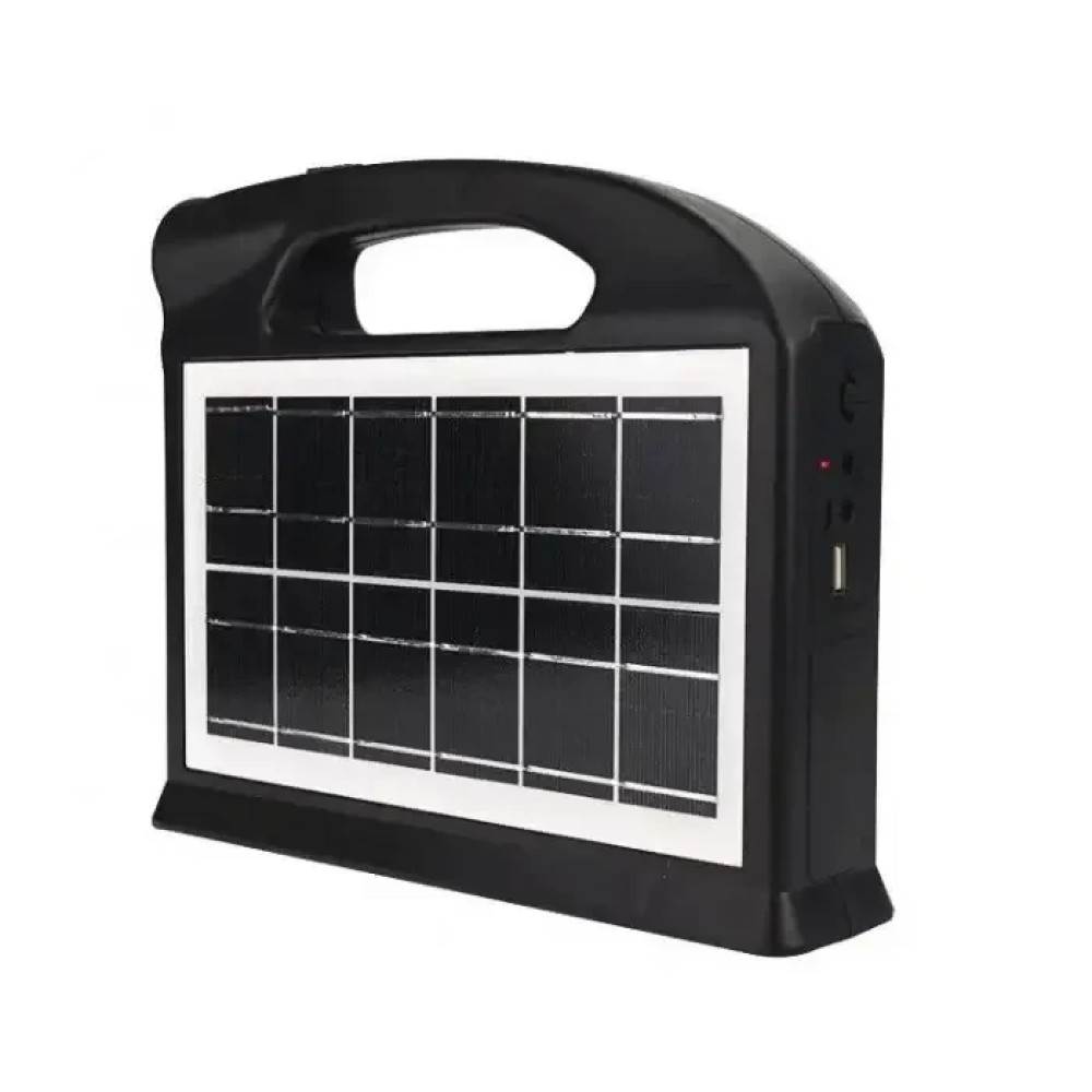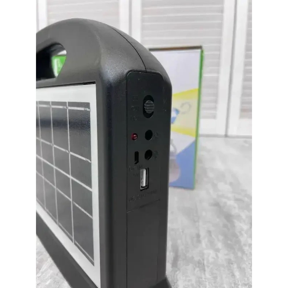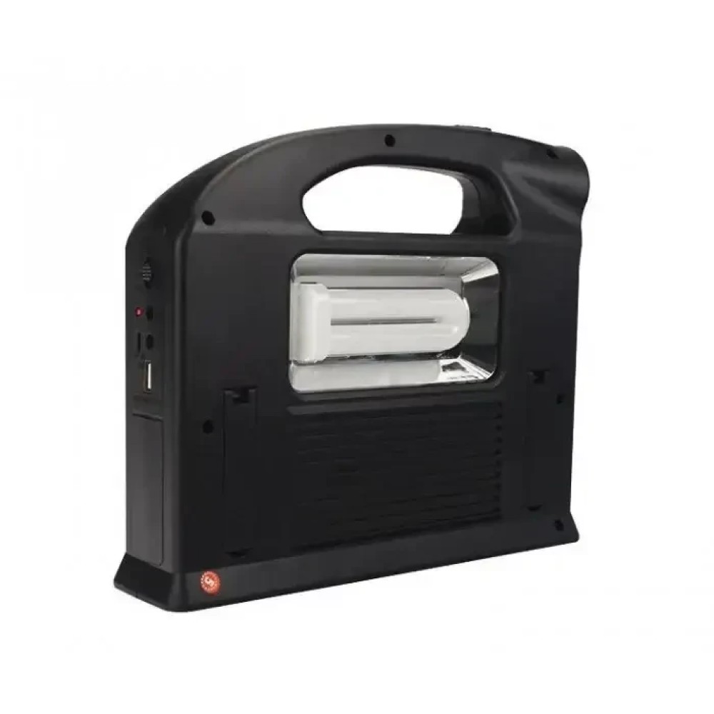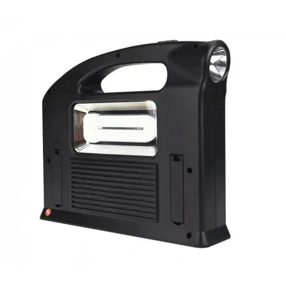 Портативна зарядна станція Cclamp CL-13 із сонячною панеллю на 2 лампочки з ліхтарем і Power Bank Сонячна зарядна станція Cclamp CL-13 — багатофункціональний ліхтар із сонячною панеллю та лампочками, призначений для освітлення в умовах відсутності електроенергії. LED-ліхтар-прожектор із сонячною панеллю та двома лампочками стануть безпечною й екологічною альтернативою свічок, коли немає подавання живлення в електромережі, а також на природі далеко від цивілізації. За допомогою універсального USB-кабелю можна зарядити мобільний телефон, щоб залишатися на зв'язку. Характеристики: Тип: портативний ліхтар/ автономний ліхтар Матеріал: АБС + ПК Колір корпусі: чорний Потужність: 30 Вт Живлення: літієва батарея, що перезаряджається Об'єм акумулятора: 4500 мА·год Сонячна панель потужністю 2 Вт Час роботи: 8-20 годин Час заряджання: 8-15 годин Комплектація Акумуляторний ліхтар Cclamp CL-13 2 лампочки Комплект дротів для заряджання смартфонів Паковання