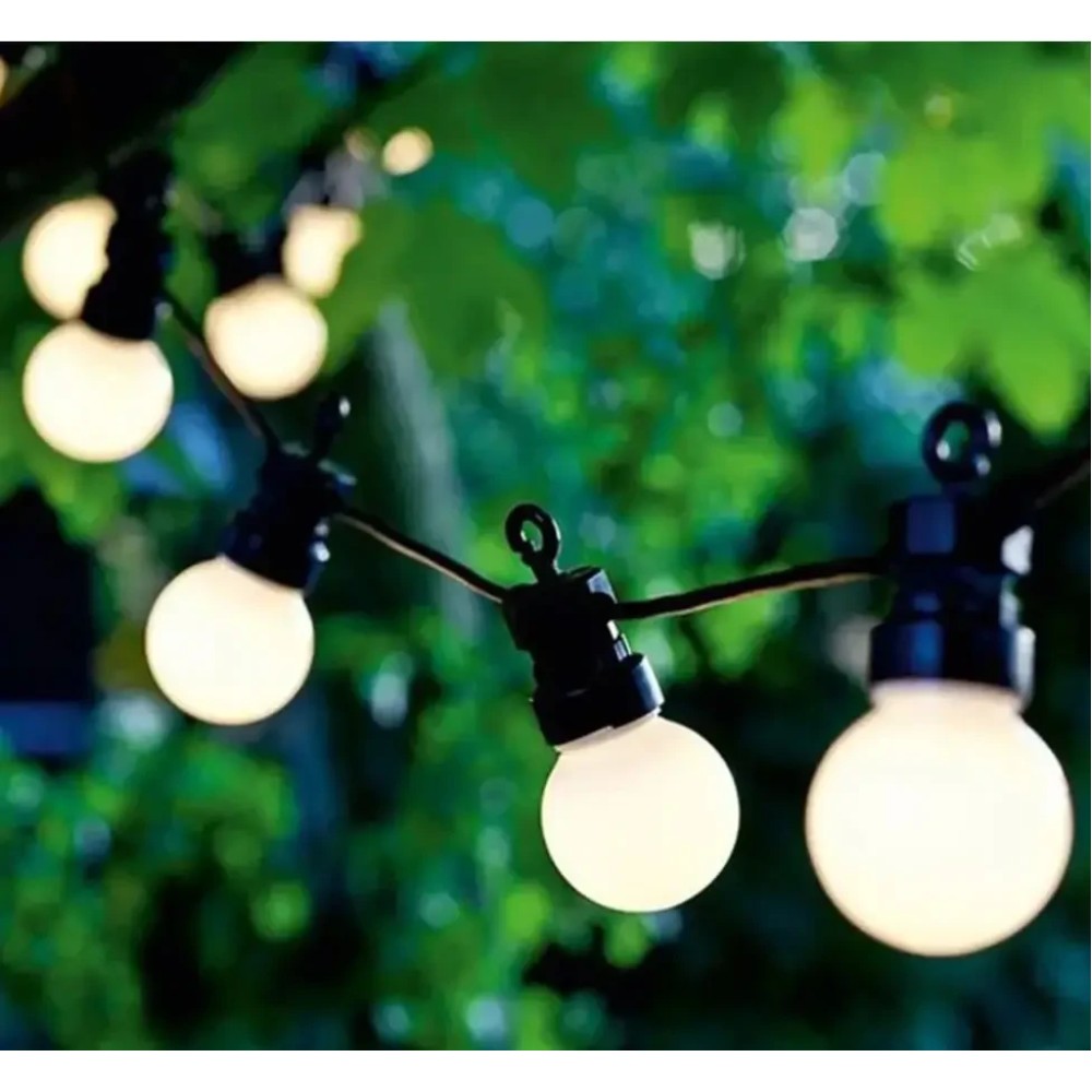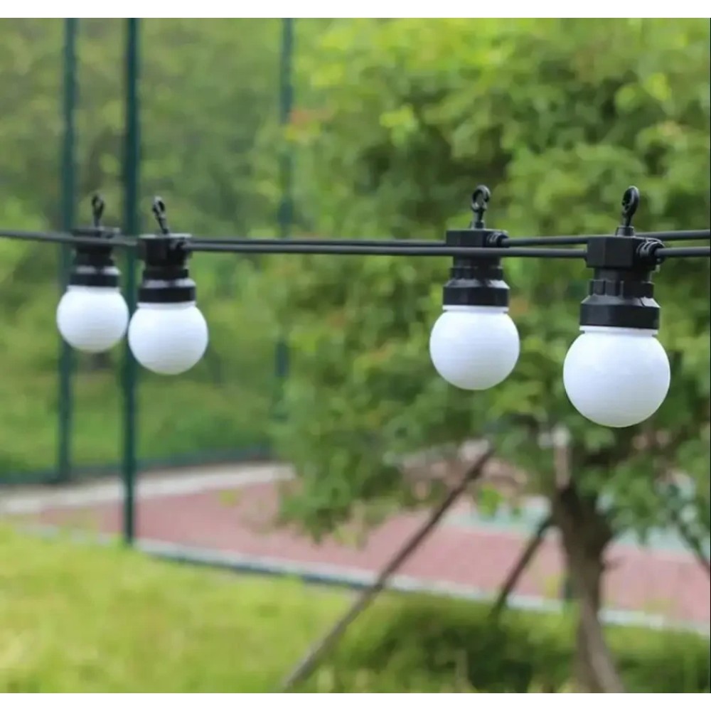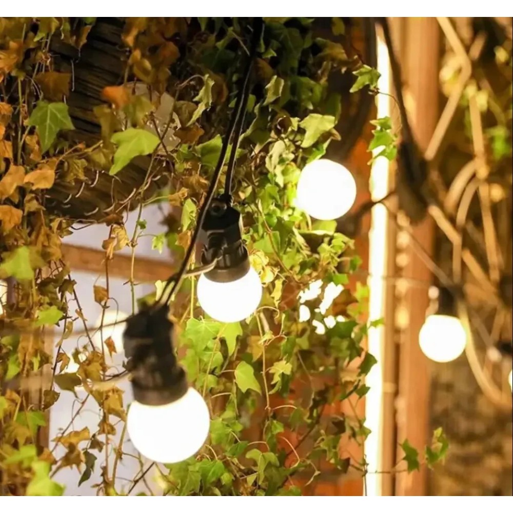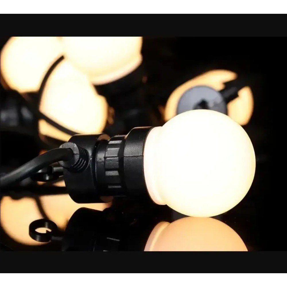 Вулична гірлянда 5 м у стилі Ретро на чорному дроті з 10 LED лампами та теплим білим світінням Додайте чарівниці в будь-який простір з світлодіодною Ретрогірляндою, створеної для стильного й атмосферного освітлення. Вона ідеально підійде для прикраси садів, терас, веранд, альтанок, ресторанів, кафе, а також для Весілля, днів народження, свят і затишних вечорів просто неба. Гірлянда обладнана 10 небиткими лампочками, що випромінюють тепле біле світло, який наповнює простір м'яким сяйвом, створюючи затишну та романтичну атмосферу. Гнучкий кабель і можливість наскрізного з'єднання дають змогу використовувати кілька гірлянд одночасно, продовжуючи світлову лінію та розширюючи можливості декорування. Міцна конструкція і ступінь захисту IP65 роблять гірлянду стійкою до дощу, снігу, вітру та перепадів температур, даючи змогу використовувати її в будь-яку пору року. Завдяки вбудованим петлям для підвішування процес монтажу стає простим і зручним, а продуманий дизайн гарантує довговічність і надійність в експлуатації. Переваги: Атмосферне освітлення — тепле біле світло створює затишну, розслаблювальну атмосферу. Влагозащита IP65 — не боїться дощу, снігу та інших примх погоди. Енергоефективні LED-лампи — довговічні, заощаджують електрику та не нагріваються. Гнучкий монтаж — можна з'єднувати кілька гірлянд, збільшуючи довжину освітлення. Універсальне застосування — підходить для вулиці та приміщень, для приватного та комерційного використання. Просте встановлення — кріпиться за допомогою гачків, напрямних дротів або стяжок. Характеристики: Тип ламп: світлодіодні (LED) Кількість лампочок: 10 шт. Потужність: 6 Вт Колір світіння: теплий білий Матеріал: міцний пластик, ПВХ Напруга: USB Колір проводу: чорний Колір колб ламп: білий Ступінь захисту: IP65 (повний захист від пилу та вологи) Режими світіння: 1 (постійне світіння) Тип з'єднання: наскрізне (можливість під'єднання кількох гірлянд) Тип встановлення: підвісна (петлі для кріплення) Ця стильна та надійна гірлянда допоможе вам створити незабутню атмосферу затишку та свята, додавши тепла та чарівництва в будь-який простір.