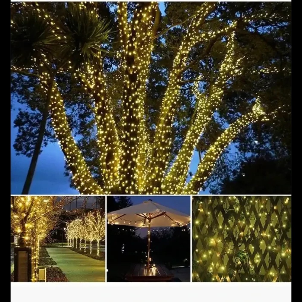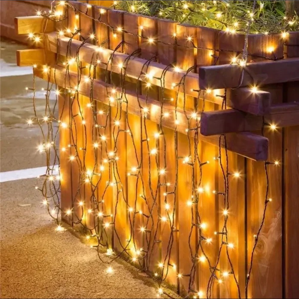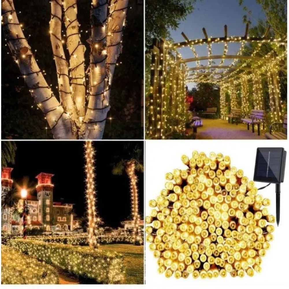 Вулична гірлянда із сонячною панеллю Лінза діод SFK-16 Водонепроникні світлодіодні лампи-гірлянда 10 м Світлодіодна гірлянда SFK-16 зі 100 LED — це популярне рішення для святкового та ландшафтного освітлення, яке працює на сонячній енергії. Гірлянда обладнана сонячною панеллю та вбудованим акумулятором, завдяки чому повністю незалежна від розетки. Вона автоматично вмикається під час настання темряви та вимикається під час світла, забезпечуючи яскраве й економне освітлення на всю ніч. Світлодіоди випромінюють тепле біле світло та пропонують два режими роботи: миготіння й постійне світіння. Ця вологостійка гірлянда стане ідеальною прикрасою для дерев, веранд, даху або альтанки, створюючи святкову атмосферу та затишок на ділянці. Переваги: Енергонезалежність — працює від сонячної батареї, не вимагає під'єднання до мережі. Автоматичне керування — гірлянда вмикається в темряві та вимикається на світанку завдяки вбудованому датчику. Тривала робота — до 8 годин світіння після повного заряджання. Легке встановлення — компактна сонячна панель легко фіксується в ґрунті, а монтаж гірлянди не вимагає спеціальних навичок. Захист від вологи — високий клас водонепроникності IP65, підходить для використання на вулиці в будь-яких погодних умовах. Економність і довговічність — термін експлуатації світлодіодів до 40 000 годин без втрати яскравості. Характеристики: Колір світіння: теплий білий Довжина гірлянди: 10 метрів Кількість світлодіодів: 100 (приблизно 10 LED на метр) Сонячна панель: 2V, 170mA Акумулятор: вбудований, ємність 800 мА·год, 3.7 V, 0.5 A Час роботи: до 8 годин після повного заряджання Час заряджання: майже 6 годин під прямими сонячними променями Робоча температура: від -25 °C до +60 °C Температура зберігання: от -40℃ до +80℃ Водонепроникність: класс IP65 Режими світіння: миготіння та постійне світло Термін експлуатації світлодіодів: до 40 000 годин Розмір сонячної панелі: 100x95x20 мм Сертифікація: CE, FCC, RoHS, CCC, WEEE