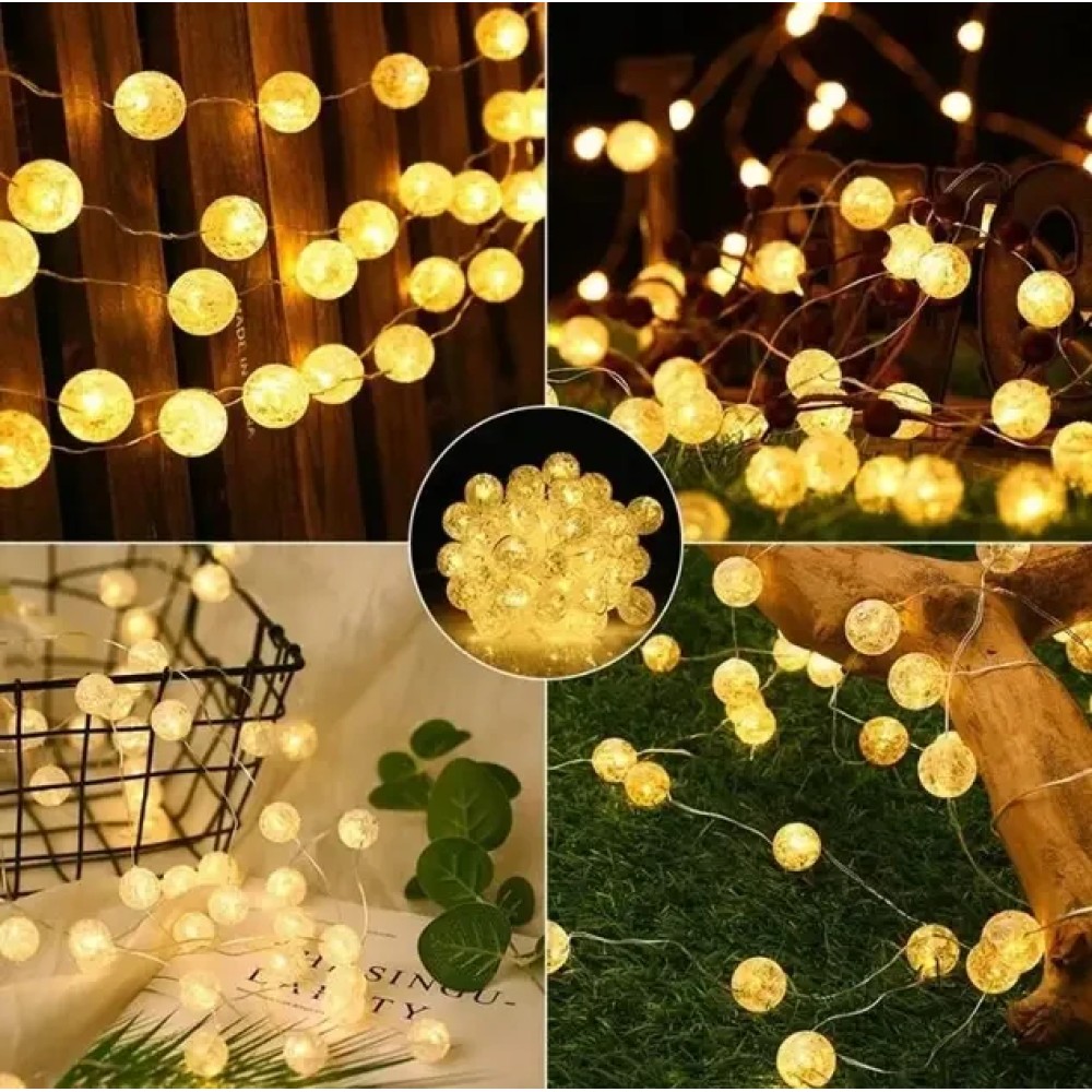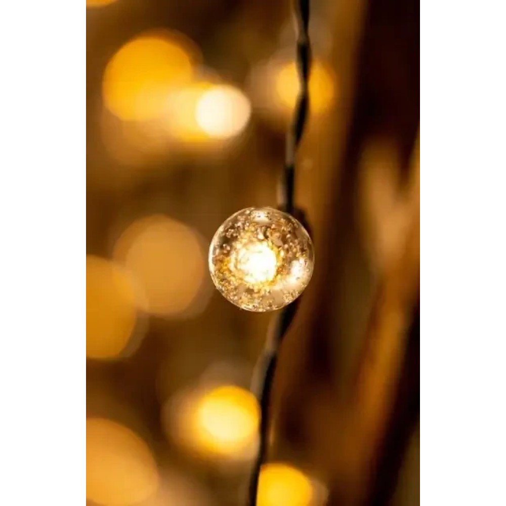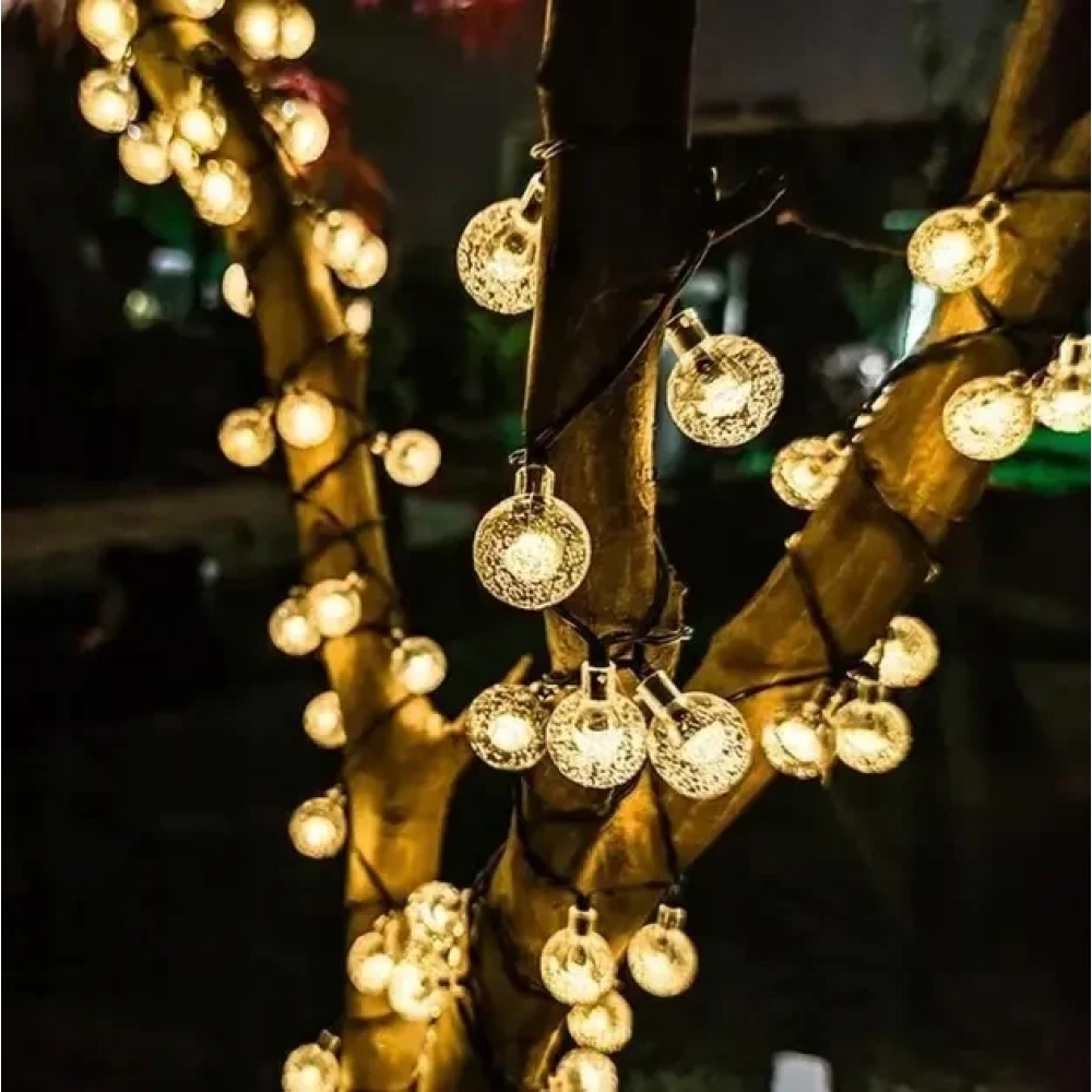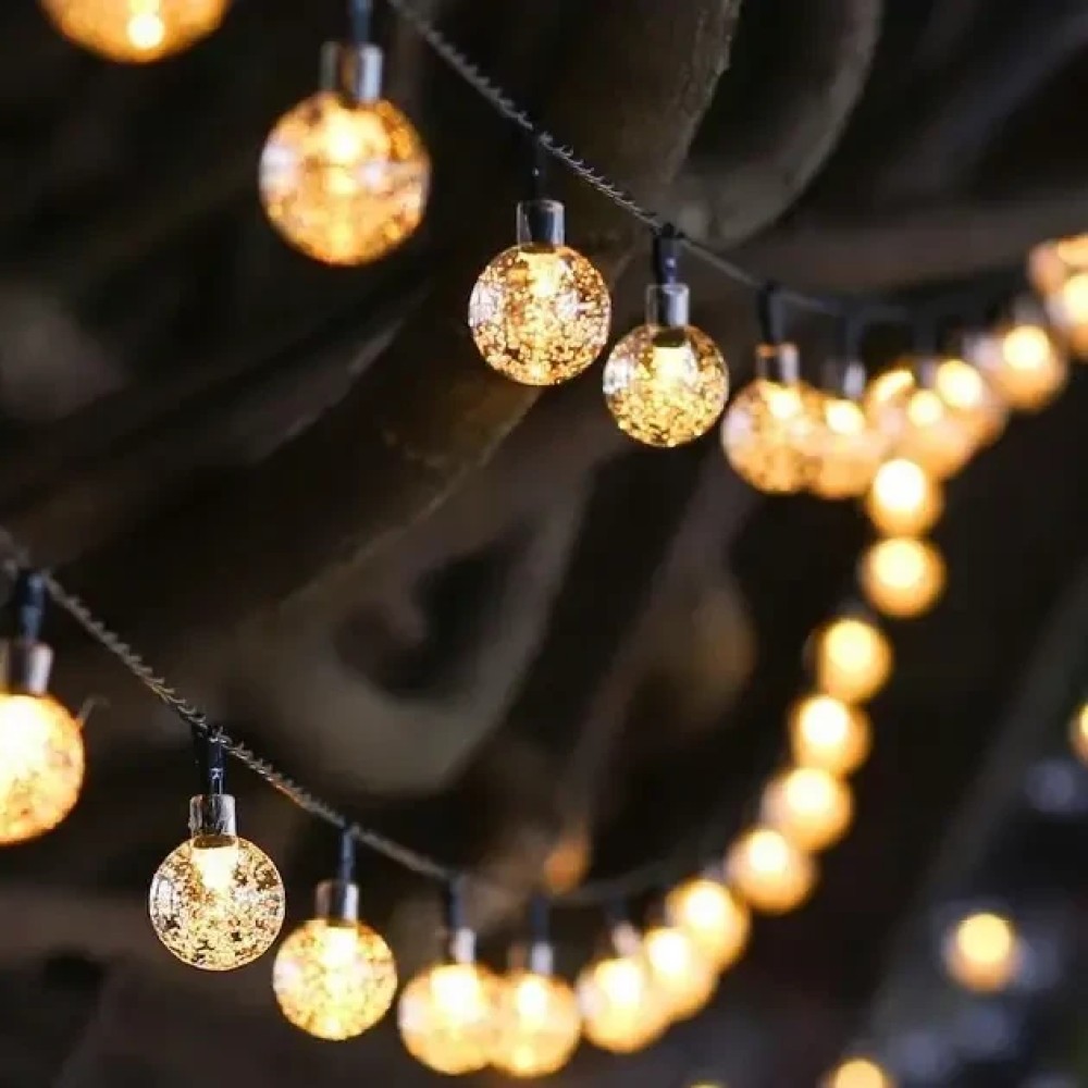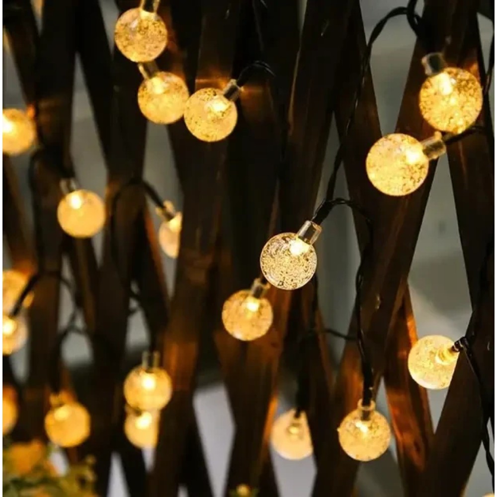 Вулична гірлянда із сонячною панеллю Сонячні кристалічні бульбашки SFK-17 Довжина 5 метрів 20 LED кульок Вулична гірлянда із сонячною панеллю "Сонячні кристалічні бульбашки SFK-17" — це ідеальне рішення для створення м'якого, затишного освітлення на садових доріжках, терасах або навколо архітектурних елементів просто неба. Завдяки 20 світлодіодних куль, що випромінюють тепле біле світло, і довжині 5 метрів, гірлянда чудово підкреслить атмосферу вашого саду або патіо. Особливості гірлянди, як-от 8 режимів освітлення, захист від води та пилу (IP44), а також вбудована сонячна панель із датчиком сутінку, роблять її практичним і стильним декоративним елементом, що підходить як для літніх, так і для зимових сезонів. Переваги: Автоматичне увімкнення: вбудований датчик сутінку містить освітлення з настанням темряви. Економне рішення: працює на сонячній енергії, не вимагає під'єднання до мережі. Багатофункціональність: ідеально підходить для освітлення доріжок, під'їзних шляхів, рослин і декоративних об'єктів саду. Вологозахищеність: ступінь захисту IP44 дає змогу використовувати гірлянду в будь-яку погоду. Тривалий термін експлуатації: розрахована на 10 000 годин роботи, що забезпечує довговічність використання. Характеристики: Матеріал: пластик Колір світіння: теплий білий (2700K) Кількість світлодіодів: 20 Довжина гірлянди: 5 метрів Режими освітлення8 режимів Ступінь захисту: IP44 Час роботи від заряду: до 6 годин (у разі сонячного заряджання впродовж дня) Тип сонячної панелі: аморфна Вбудована батарея: так, з можливістю заряджання Додаткові функції: механічний вимикач ON/OFF, вбудований датчик сутінку
