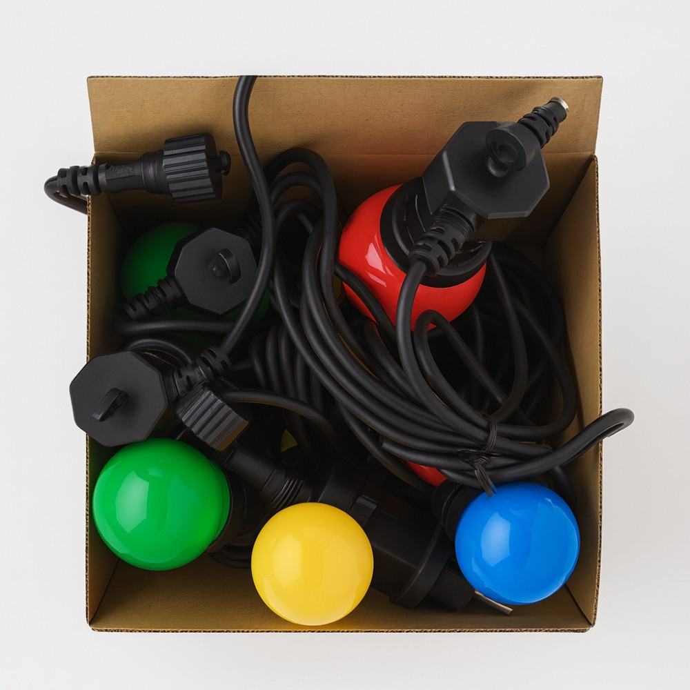 Створіть затишок і святкову атмосферу з вуличною гірляндою-шарами RGB — ідеальним рішенням для дому, тераси, кафе чи двору. Гірлянда завдовжки 5 метрів містить 10 великих акрилових куль, кожен із яких випромінює м'яке різнобарвне світло. Завдяки защите IP65, стрічка стійка до вологи, дощу та снігу — використовувати її можна в будь-яку пору року. Корпус ламп виготовлений із міцного акрилу, а щільний кабель витримує перепади температур. Гірлянда під'єднується до мережі 220 В і забезпечує низьке енергоспоживання, зберігаючи водночас яскравість і насиченість кольору. ???? Переваги: Яскраві та рівномірні LED-лампи RGB; Вологозахист IP65 — підходить для вулиці; Міцний кабель і надійні з'єднання; Універсальний дизайн — для дому, саду, кафе та декору заходів; Просте під'єднання — вмикай та насолоджуйся світлом. ???? Де використовувати: — фасади будинків і альтанки, — вікна та вітрини, — фотозони та вечірки, — кафе, ресторани, тераси.