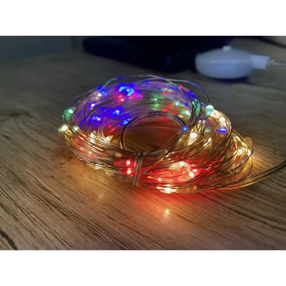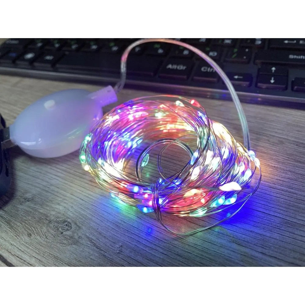 Гірлянда дріт музичний USB RGB різнобарвний Опис: Без гірлянд новорічні свята не запалюються! Ці світлячки створюють найбільш теплу атмосферу саме тоді, коли найбільше ми потребуємо затишку та комфорті. У гірлянд є суперхарактеризація — перетворювати все навколо на казку. В приміщенні або на вулиці, вони вписуються скрізь і тішать око. Самі по собі гірлянди це просто маленькі лампочки. Але варто їх повісити на стіну або вікно, викласти на книжковій полиці або прикрасити ними ялинку, так відразу ж трепет і передчуття свята розливається по тілу. Музика вмикається і вимикається! Характеристики: Кількість лампочок: 100 шт. Довжина гірлянди: 10 м. Довжина проводу: 1,5 м. Цвет: RGB Відстань між лампочками: 10 см. Колір проводу: прозорий. Наявність мелодій: приблизно 8 мелодій Використання: всередині приміщень (IP20)