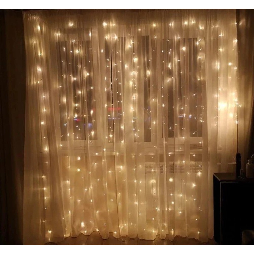 Опис Світлодіодна гірлянда штора призначена для оформлення офісів, квартир, ресторанів, кафе та декору фотозон. Прикраса складається із силіконових дротів і лампочок, від горизонтального шлейфа відходять нитки з діодами. Якщо стандартного розміру буде недостатньо, можливе під'єднання однотипних модулів через з'єднувальний конектор. Купити світлодіодну гірлянду Штора варто не тільки для Нового року або Різдва, вона матиме доречний вигляд, як джерело додаткового освітлення в інтер'єрі. Гірлянда 2,0 х 2,0 метра наповнить незвичайним барвистим сяйвом Ваш будинок і подарує всім, хто оточує, незабутню атмосферу свята. Характеристики: Розмір: 2х2м Кількість діодів: 240 шт Колір: Теплий білий Кут світіння: 360 град.