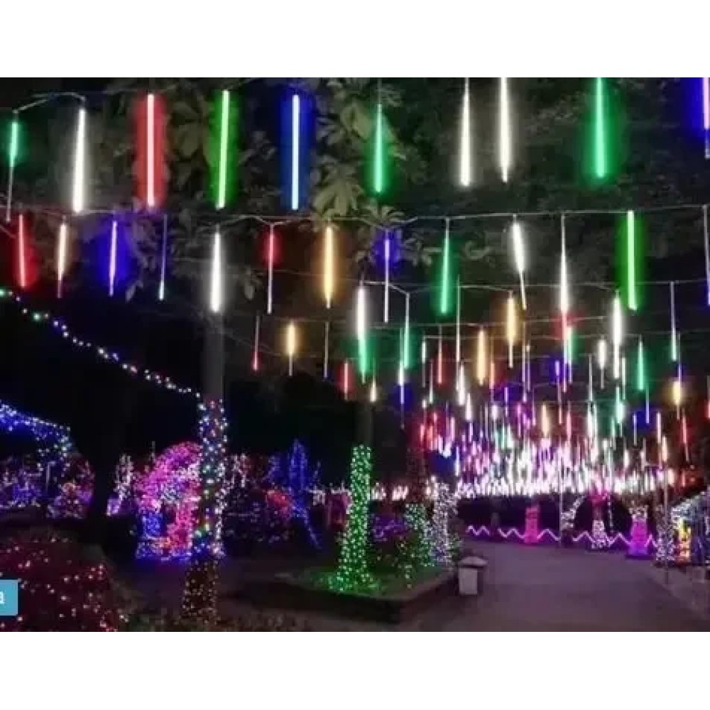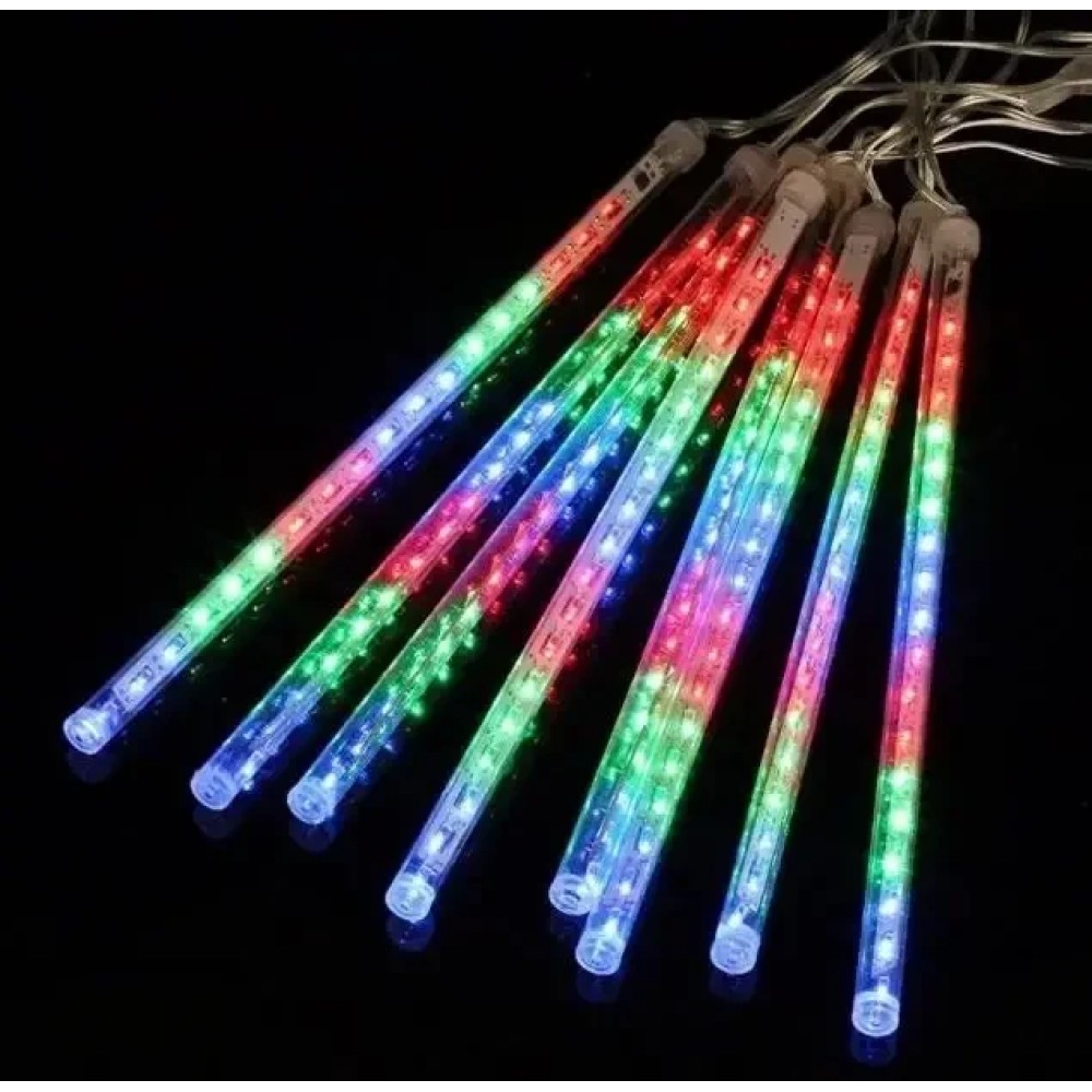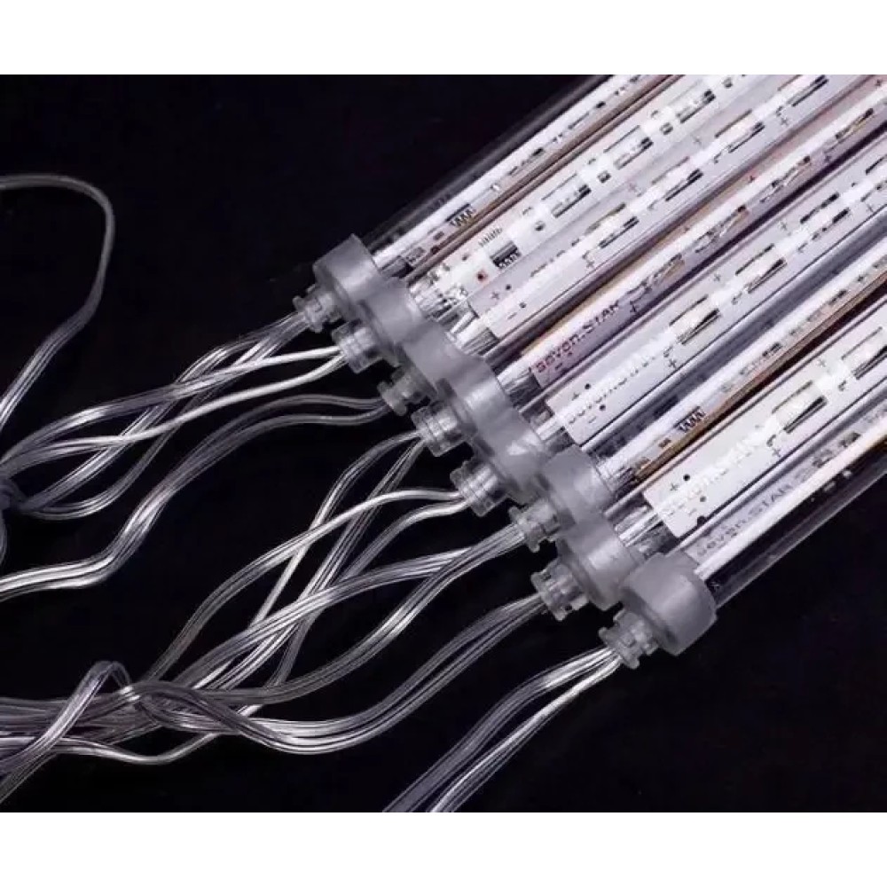 Електрична новорічна гірлянда метеоритний дощ трубки бурульки 50 см колір ламп мікс Гірлянда «Тухливі бурульки» «Snowfall» чудово підійде для прикрашання будівель і матиме ефектний вигляд уздовж карниза та козирка даху. Також добре гірлянда матиме вигляд на новорічній ялинці та деревах. Виготовлена вона з білого кабелю, з якого звисають пластикові трубки у формі крижаних бурульок. Усередині розташована плата зі спалахами почергово світлодіодами. Так створюється світло динамічного ефекту краплі, що біжить, і і імітація сушарки, що тане. Характеристика: Довжина гірлянди: 50 см Можливо під'єднати кілька гірлянд в одну: є Кількість трубок: 8 шт Діаметр трубки: 1 см Довжина трубки: 50 см, крок між трубками 30 см; Колір світлодіодів: теплий Колір кабелю: прозорий Регулятор швидкості: немає Напруга живлення: 220 В Температурний діапазон використання: від -40 °C до +40 °C