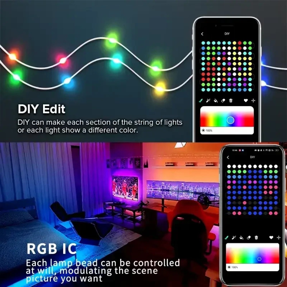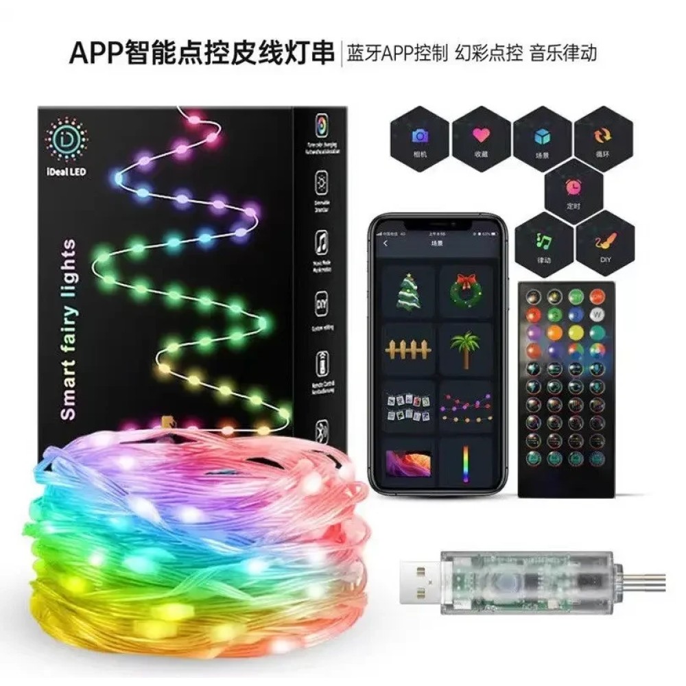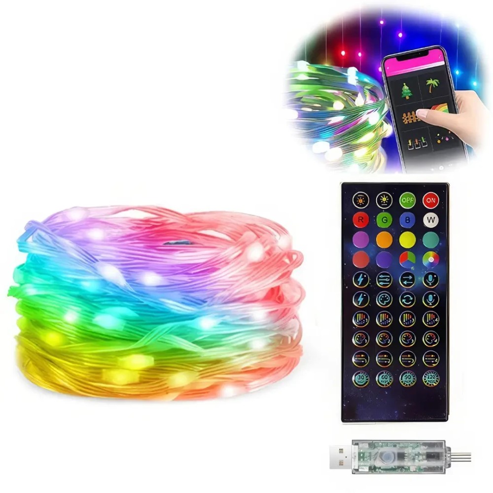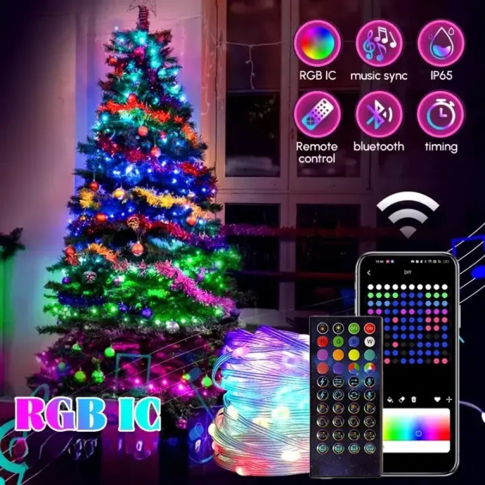 Програмована новорічна LED гірлянда Крапля роси з пультом і керуванням із телефона SFK-04 Bluetooth USB 10 м Гірлянда "Крапля роси" SFK-04 — це стильне рішення для святкового оформлення. Завдяки RGB-підсвітці та керуванню через мобільний застосунок і пульт, гірлянда дає змогу створювати унікальні світлові ефекти. Підходить як для оздоблення ялинок, так і для інших святкових декорацій, а компактний USB-роз'єм забезпечує гнучкість використання. Підтримка iOS і Android дає змогу легко синхронізувати гірлянду з вашим пристроєм. Переваги: Три режими керування: Кнопка на USB-кабелі, пульт дистанційного керування та Bluetooth-синхронізація через застосунок iDeal LED для гнучкого вибору режимів і налаштувань. Захист IP65: Підходить для використання всередині та зовні вдома, витримуючи будь-які погодні умови. Синхронізація з музикою: Гірлянда змінює колір і яскравість у такт музиці, створюючи атмосферу, що відповідає настрою. Режим нічника: Для дітей передбачений низький режим, а функція автоматичного вимкнення гарантує безпеку. Енергоефективність і довговічність: Світлодіоди забезпечують низьке енергоспоживання та тривалий термін експлуатації. Незалежне живлення: Можливість під'єднання до PowerBank для безперебійного використання. Групове керування: За допомогою програми можна одночасно контролювати кілька гірлянд для створення гармонійного освітлення. Характеристики: Довжина:: 10 м, 100 светодиодов Напруга: 5 В, 2 А Потужність лампочок: 0,06 Вт/шт Ступінь водонепроникності: IP65 Тип керування: Bluetooth, інфрачервоний пульт Робоча температура: от -25 °C до 45 °C Джерело живлення: USB Колір світіння: RGB Колір дроту: Прозорий Комплектація: гірлянда, пульт, інструкція (англ.), паковання