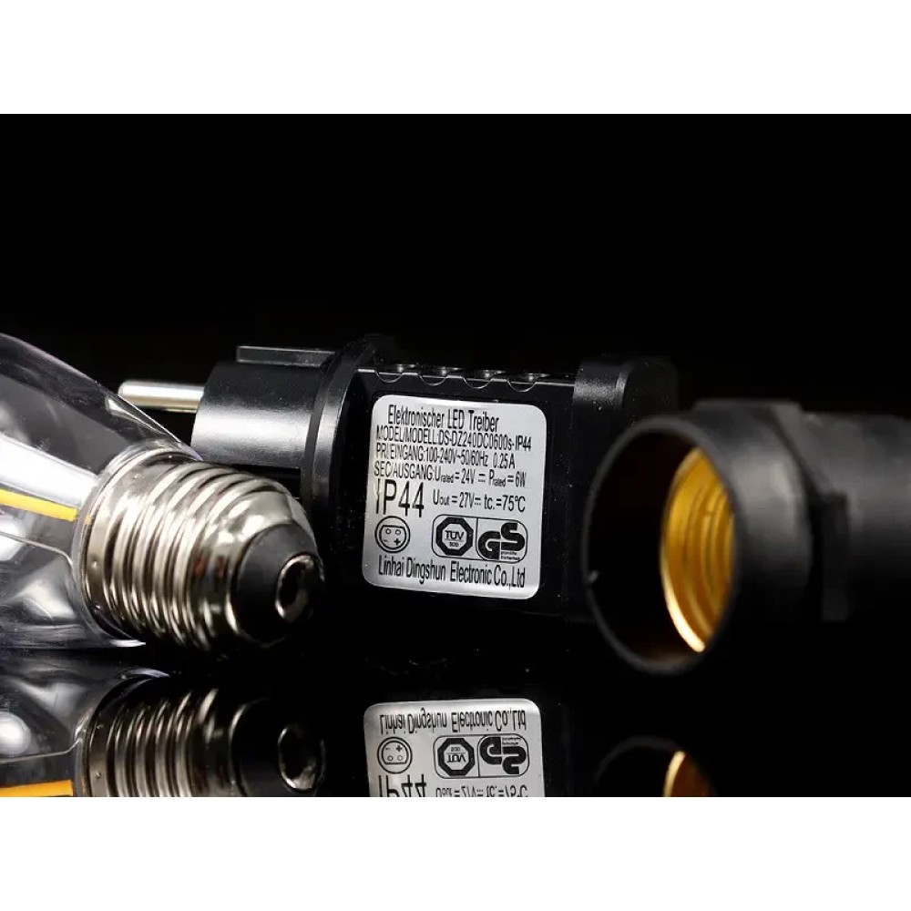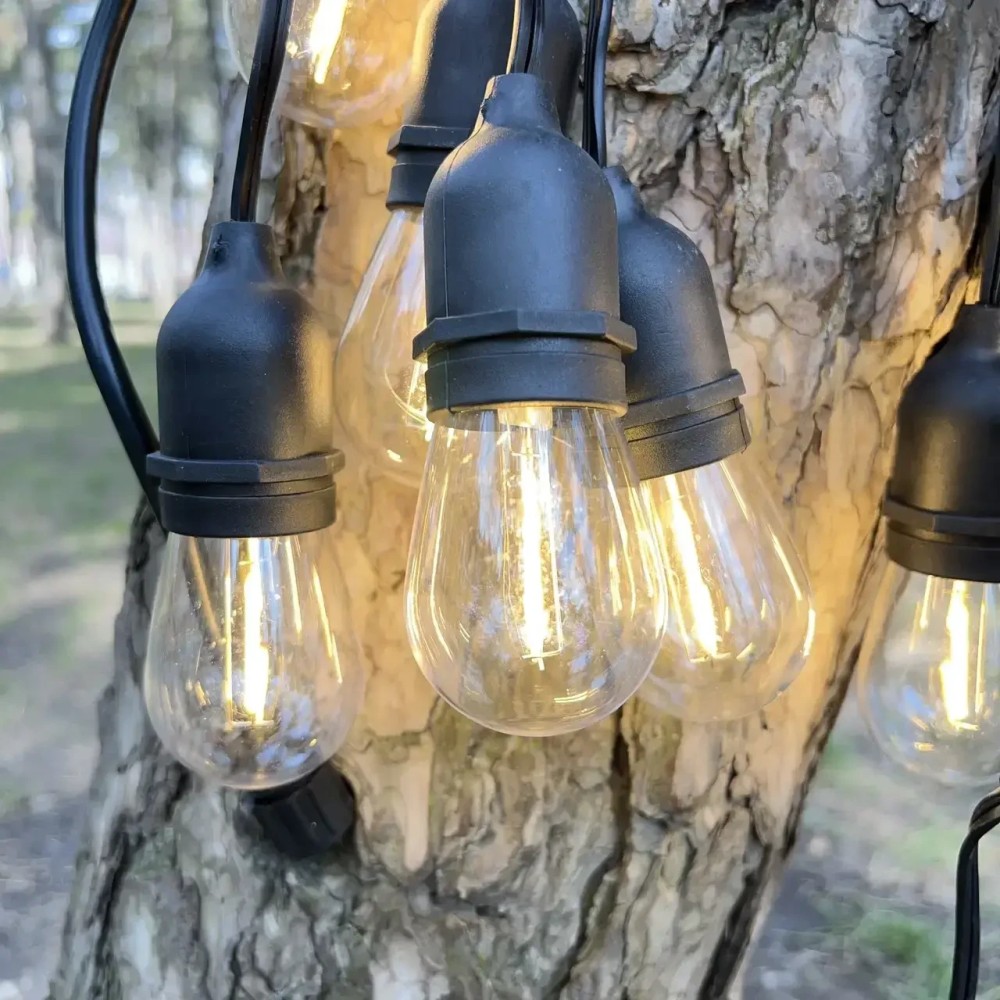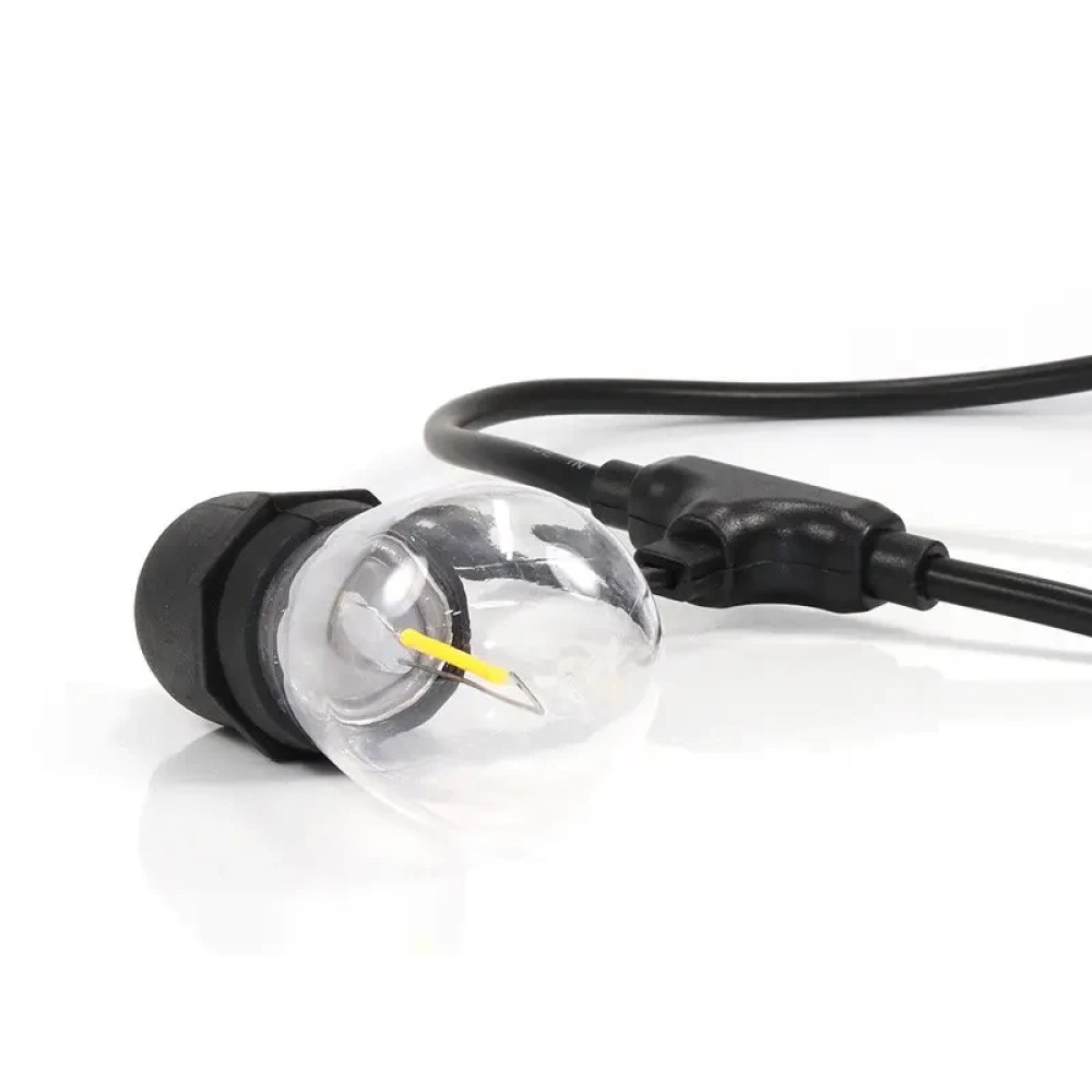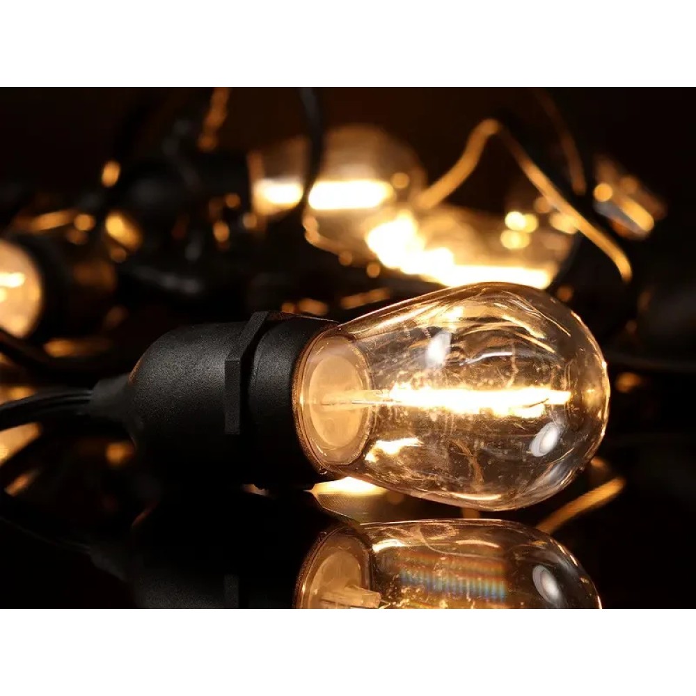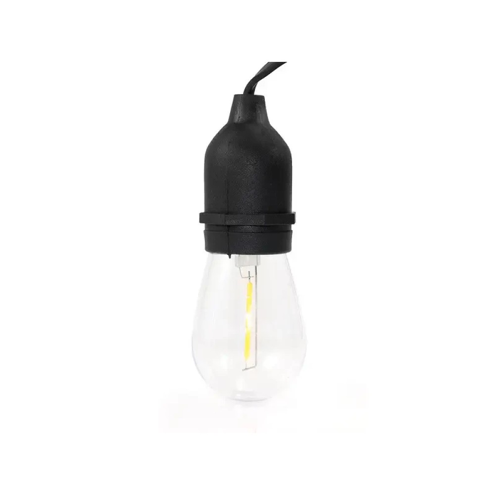 Ретро гірлянда з 10 акрилових ламп на 5 м від мережі 220 Вт колір світіння Теплий білий Ретро гірлянда з 10 акрилових ламп — це стильний елемент декору, який допоможе створити теплу та святкову атмосферу. Підходить для прикрашання дому, кафе, магазинів та будь-яких інших просторів. Гірлянда складається з нитки завдовжки 5 метрів, на якій розташовані 10 прозорих акрилових ламп. Лампи виготовлені в ретростилі та випромінюють тепле біле світло, створюючи затишне освітлення. Міцні водонепроникні матеріали роблять гірлянду підхожою для використання в захищених місцях на вулиці, як-от навіси або козирки. Ця гірлянда стане чудовим вибором для новорічного оформлення, романтичної вечері або просто для додавання затишку в інтер'єр. Використання Під'єднання: приєднайте гірлянду до джерела живлення. Розміщення: розташуйте гірлянду на стіні, уздовж козирка, на карнизі або іншій поверхні. Фіксація: закріпіть нитку за допомогою затискачів або кріпильних елементів для надійності. Використання: насолоджуйтеся м'яким теплим світлом, який створює затишну атмосферу. Ідеально підходить для внутрішнього використання або розміщення під навісами, де гірлянда захищена від прямого впливу води та пилу. Переваги Стильний дизайн: лампи виготовлені в ретростилі, додаючи шарм і затишок у будь-який простір. Довговічність: світлодіоди вирізняються низьким енергоспоживанням і тривалим терміном експлуатації. Водонепроникність: підходить для використання в захищених місцях на вулиці. Універсальність: гірлянда легко вписується в будь-який інтер'єр і підходить для різних заходів. Тепле біле світло: створює атмосферу затишку та свята. Міцність: акрилові лампи стійкі до пошкоджень і довговічні. Характеристики Колір світіння: теплий білий Кількість ламп: 10 Довжина гірлянди: 5 метрів Матеріал ламп: прозорий акрил Колір проводу: чорний Особливості: водонепроникна конструкція для використання в захищених місцях на вулиці