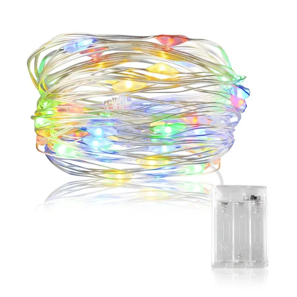 Світлова гірлянда на батарейках легка у використанні й абсолютно безпечна завдяки низькій напруги, що виключає ризик ураження електричним струмом. Для живлення гірлянди потрібні тільки три пальчикові батарейки ААА (не входять до комплекту), що забезпечує мобільність і свободу у виборі місця для декорування. Переваги: Багатоцільове використання: підходить для декорування інтер'єру, новорічних ялинок, вінків, а також надання індивідуального стилю одягу та зачісок; Гнучка нитка: легко змінює форму та обвивається навколо предметів меблів, що надає додаткового шарму вашому декору; Безпечне використання: робота гірлянди за низької напруги і живлення від трьох пальчикових батарейок ААА (не входять до комплекту) усувають ризик ураження електричним струмом, гарантуючи безпеку використання. Характеристики: Тип: світлодіодна гірлянда; Модель: RD-302; Довжина: 10 м; Кількість світлодіодів: 100; Цвета: різнобарвний; Живлення: 3 батарейки типу ААА; Комплектація Гірлянда RD-302; Заводське паковання.