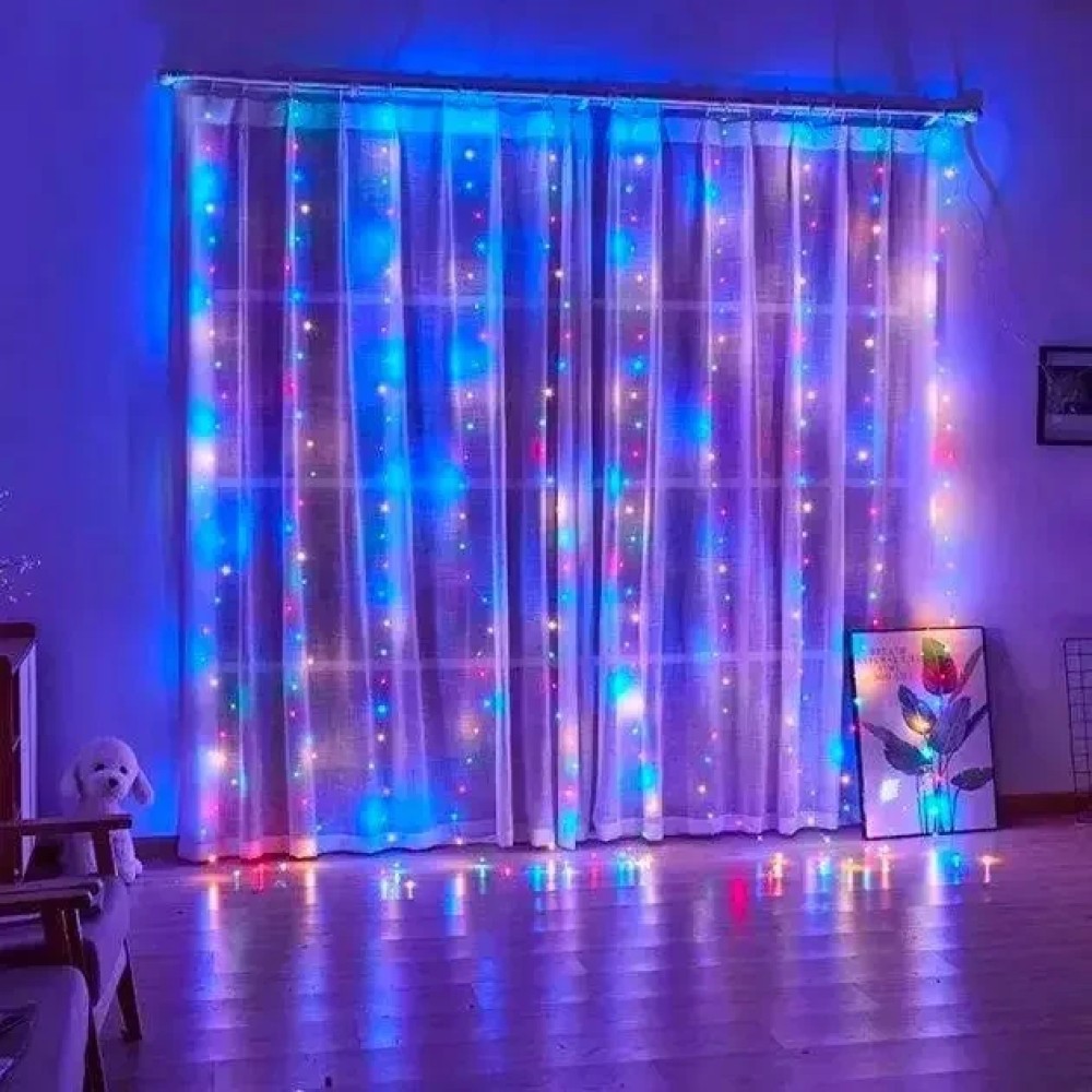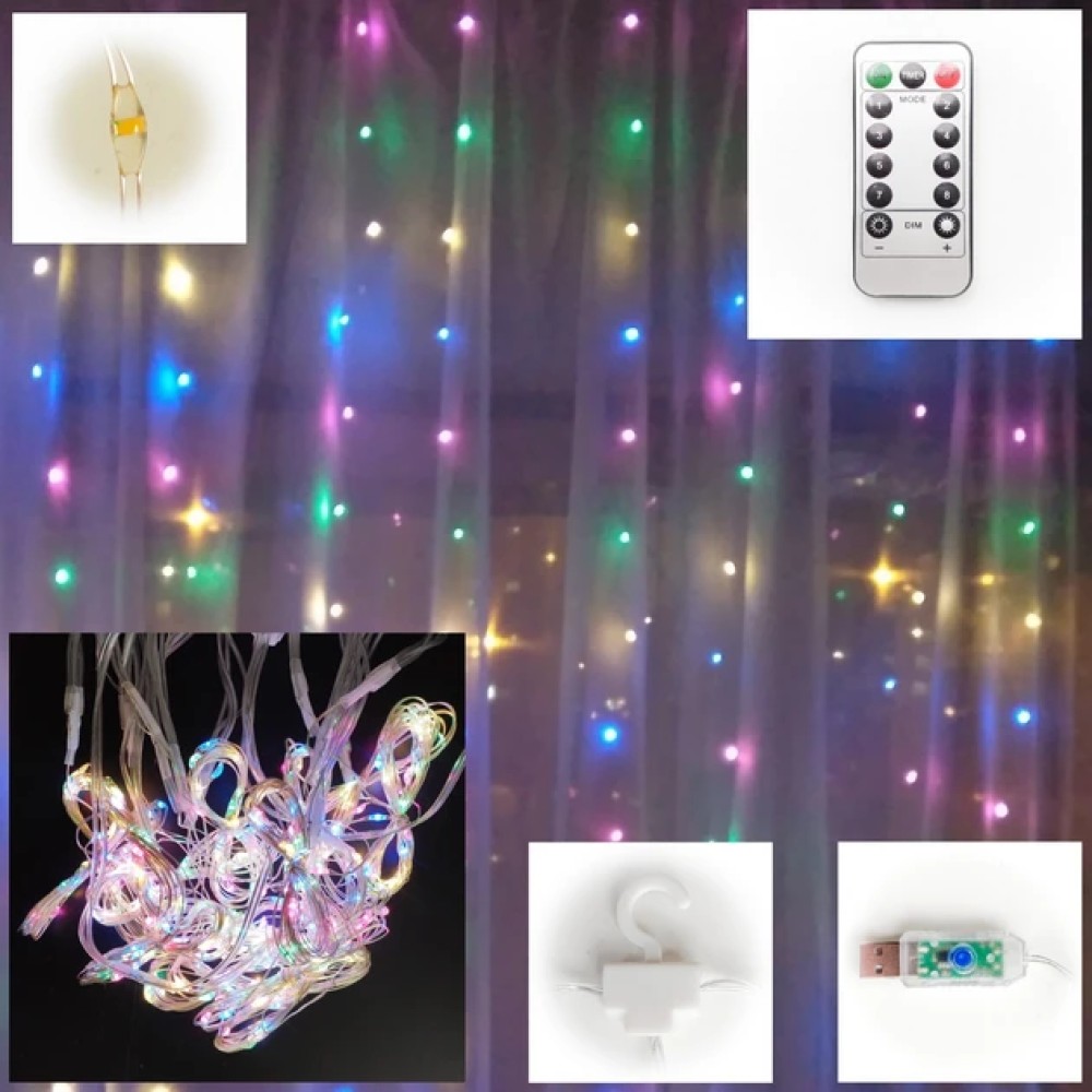 Опис Світлодіодні гірлянди. Допоможуть вам влаштувати святкове освітлення будь-де. Тонка мідна нитка з крапельними світлодіодами має дуже ефектний та стильний вигляд. Використання батарейок замість електричної мережі дає можливість необмеженої фантазії для декору та створення затишку. Завдяки своїй гнучкості та мобільності гірлянди можуть застосовуватися для прикрашання дерев, будинків, автомобілів та інших об'єктів. Світлодіодна гірлянда-штора з USB-живленням і пультом ДК. Складається з горизонтального дроту завдовжки 3 метри та 10 вертикальних ниток по 2 метри. Форма світлодіодів — крапля. Колір світіння — кольорова. Кількість режимів світіння — 8. Кількість світлодіодів — 200 одиниць. Ідеальна для святкової атмосфери. Джерело живлення — будь-який адаптер 5V, powerbank, ноутбук. Джерело живлення пульта — батарея CR2025 (у комплекті). Приємного світіння!