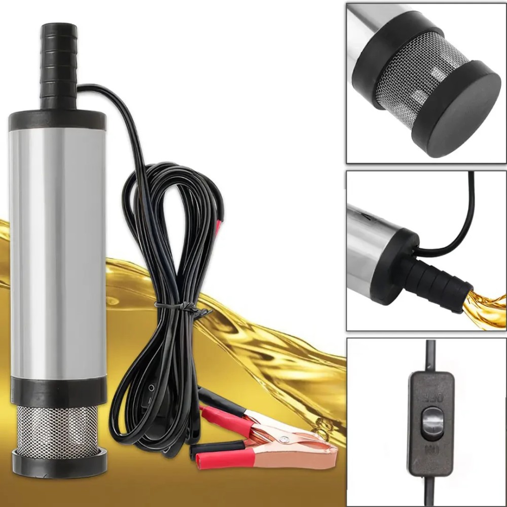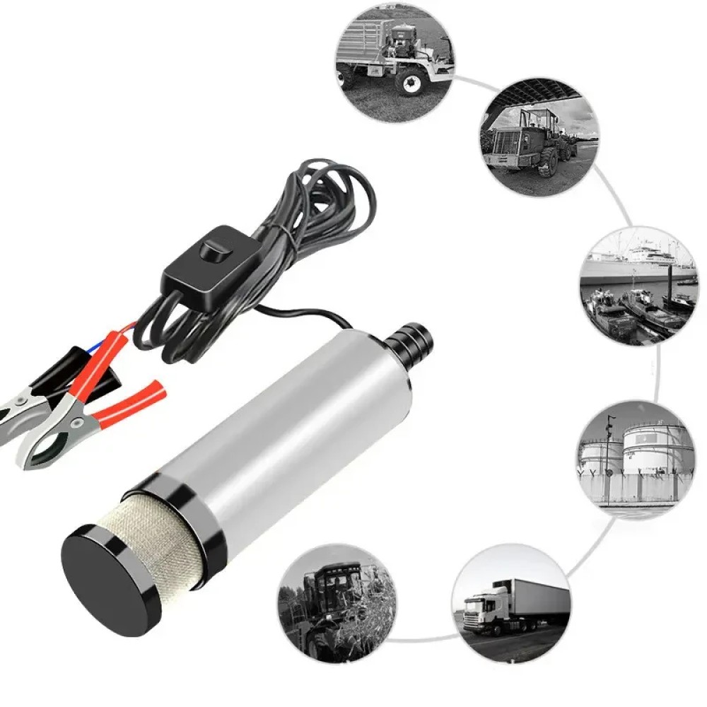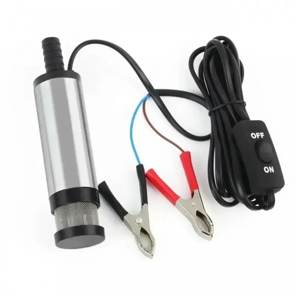 Электрический погружной насос для перекачки топлива и жидкостей 12V Серый Компактный погружной насос с диаметром корпуса 38 мм предназначен для перекачивания дизельного топлива, керосина, антифриза и других технических жидкостей из канистр, бочек или баков автомобилей. Удобен для использования в полевых условиях, особенно для заправки крупногабаритной техники, строительного оборудования и сельскохозяйственных машин. Насос легко подключается к аккумулятору автомобиля с помощью зажимов "крокодилов". Преимущества: Эффективность работы: Высокая производительность до 20 л/мин благодаря двигателю постоянного тока с частотой вращения 8500 об/мин. Прочный корпус: Изготовлен из алюминиевого сплава с пластиком, устойчив к ржавчине, коррозии и механическим повреждениям. Фильтр из нержавеющей стали: Надежно очищает жидкость от загрязнений, предотвращая повреждение оборудования. Удобное управление: Наличие выключателя на шнуре питания обеспечивает легкость эксплуатации. Безопасность: Герметичный корпус и многоканальная система уплотнений предотвращают утечки и продлевают срок службы насоса. Компактность и устойчивость: Насос имеет небольшие размеры и устойчивую конструкцию с 4 опорами-ножками. Характеристики: Рабочее напряжение: 12 В Мощность: 25 Вт Ток: 2 А Диаметр корпуса: 38 мм Диаметр выходного патрубка: 16 мм (5/8") Производительность: до 20 л/мин Максимальная высота подъема: 3 м Максимальная длина перекачки: 5 м Длина кабеля питания: 3 м Материал корпуса: алюминиевый сплав с пластиковыми вставками Фильтр: алюминиевая сетка Температурный диапазон работы: от +5 до +40 °C Режим работы: 30 минут непрерывной работы / 10 минут перерыва Размеры: 14,7 x 3,8 см Способ подключения: зажимами к АКБ Выключатель на шнуре: есть