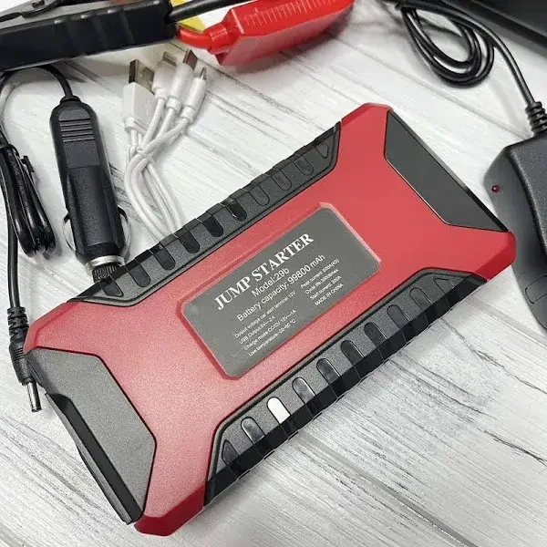 Пускозарядное устройство для автомобиля JUMPSTARTER 29B 99800 мАч (300/600А) Описание: Пускозарядное устройство JUMP STARTER 29B WITH PUMP 99800 мАч - это компактный прибор, с помощью которого можно в два счета запустить автомобильный двигатель в случае разряда штатного аккумулятора машины. Такой аккумулятор будет незаменим для всех автолюбителей и путешественников на машине. Возможности устройства JUMP STARTER 29B: Запуск двигателей автомобилей, мотоциклов, катеров в случае если ваш штатный аккумулятор разряжен; Запуск двигателей автомобилей при низких температурах для усиления штатной аккумуляторной батареи; Зарядка портативных электронных устройств: телефонов, планшетов, ноутбуков, носимых модемов, фотоаппаратов и прочее; Напряжение 12V; Диодный фонарик работающий в трех режимах (фонаря, стробоскопа, подачи сигнала "SOS"). Пускозарядное устройство JUMP STARTER 29B подходит для всех видов транспортных средств с системой электроснабжения 12 В до 20 раз старта. Для запуска устройство необходимо подключить с помощью "крокодилов" к разряженному аккумулятору, подождать пару минут и можно заводить автомобиль. Особенности: Компактные размеры и небольшой вес. Светодиодная индикация состояния заряда встроенного аккумулятора. Возможность зарядки портативных устройств. Оснащено портативным фонариком с подсветкой и предупреждающей лампой SOS. Оборудовано системой защиты от короткого замыкания, перезарядки и перегрузки. Характеристики: Вес 500 г. Выходное напряжение12В/2А; Емкость батареи 99800 мАч; Зарядка батареи 4-5 часов; модель 29B; Размер 160 х 80 х 30 мм; Сила выходного тока 300А; Пиковая сила тока: 600А Срок годности До 3000 циклов; Температура –20 до +60 С; Тип Пускозарядное устройство;