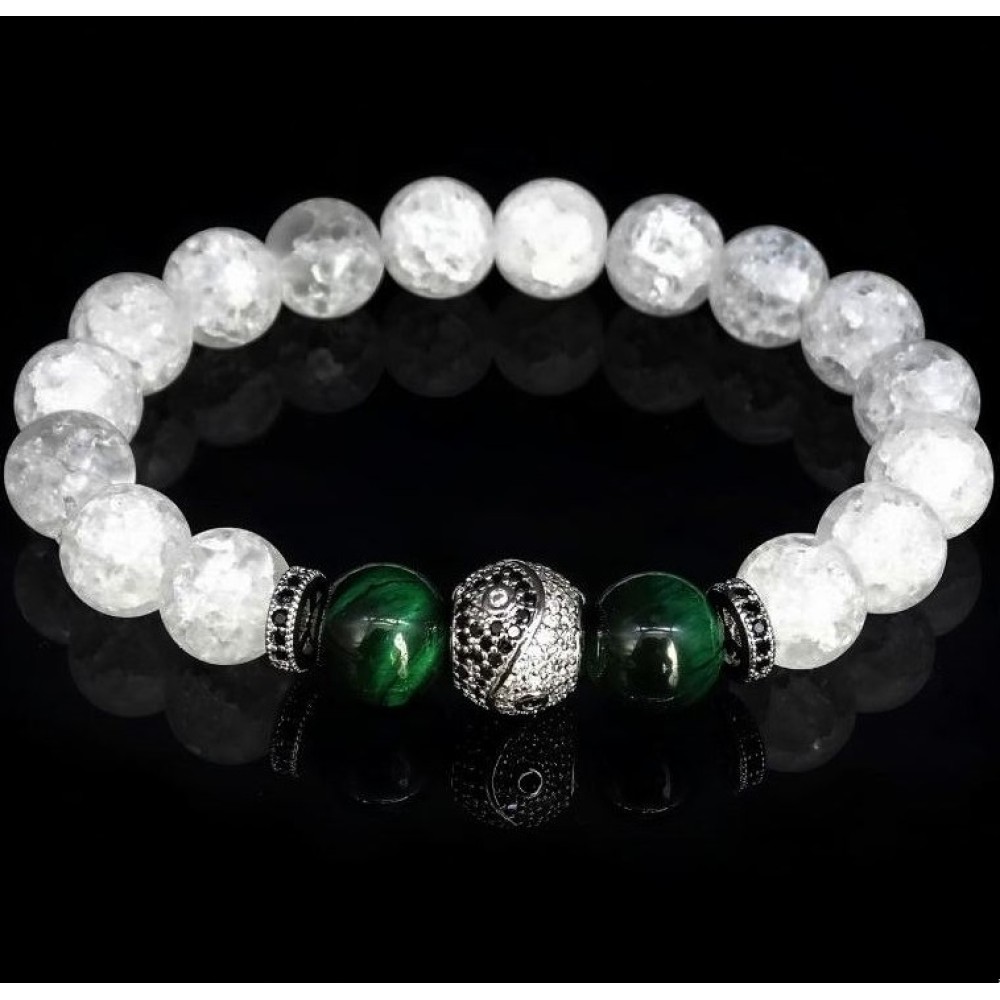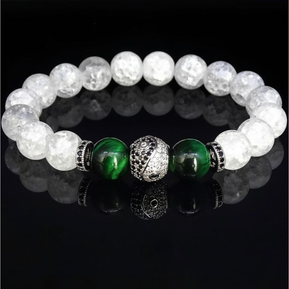 Браслет із натурального каменю гірський кришталь та тигрове око зелене
