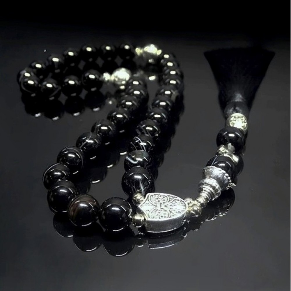 Количество бусин в четках 33 шт. Разделитель через каждые 11 шт. Материал: нейлоновый шнур, металл цвет серебро