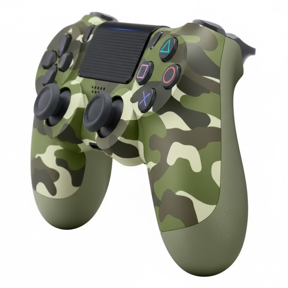 Описание товара Беспроводной геймпад P4 Wireless Controller для PS4 Беспроводной контроллер P4 — это современный и функциональный аналог классического геймпада для игровой консоли. Устройство сочетает в себе привычную эргономику, отзывчивое управление и все необходимые технологии для комфортного гейминга. Джойстик отлично лежит в руках благодаря матовому покрытию и обеспечивает полную свободу движений благодаря подключению по Bluetooth. Это отличное и экономное решение для замены старого устройства или покупки второго геймпада для игры с друзьями. Преимущества: Полная совместимость: стабильно работает со всеми версиями консоли (Fat, Slim, Pro), а также легко подключается к ПК и ноутбукам. Сенсорная панель: поддерживает управление жестами и касаниями, расширяя игровые возможности в современных тайтлах. Эффект погружения: встроенные вибромоторы обеспечивают реалистичную тактильную отдачу, а динамик дополняет звуковую картину. Световая панель (Light Bar): меняет цвет в зависимости от происходящего на экране, помогая отслеживать статус персонажа. Кнопка Share: позволяет мгновенно записывать игровые моменты или запускать стримы одним нажатием без прерывания игры. Автономность: встроенный аккумулятор обеспечивает длительное время активной игры без подзарядки. Удобство общения: стандартный разъем 3.5 мм позволяет подключать гарнитуру прямо к джойстику. Технические характеристики: Тип: Беспроводной геймпад Совместимость: PS4, PC, Mac Интерфейс подключения: Bluetooth, USB Радиус действия: до 10 метров Питание: Встроенный аккумулятор Функции: Вибрация, гироскоп, сенсорная панель, подсветка Разъемы: microUSB, 3.5 мм jack (для наушников), порт расширения Материал корпуса: Ударопрочный пластик Цвет: Серый камуфляж Комплектация: беспроводной геймпад кабель для зарядки microUSB инструкция заводская упаковка